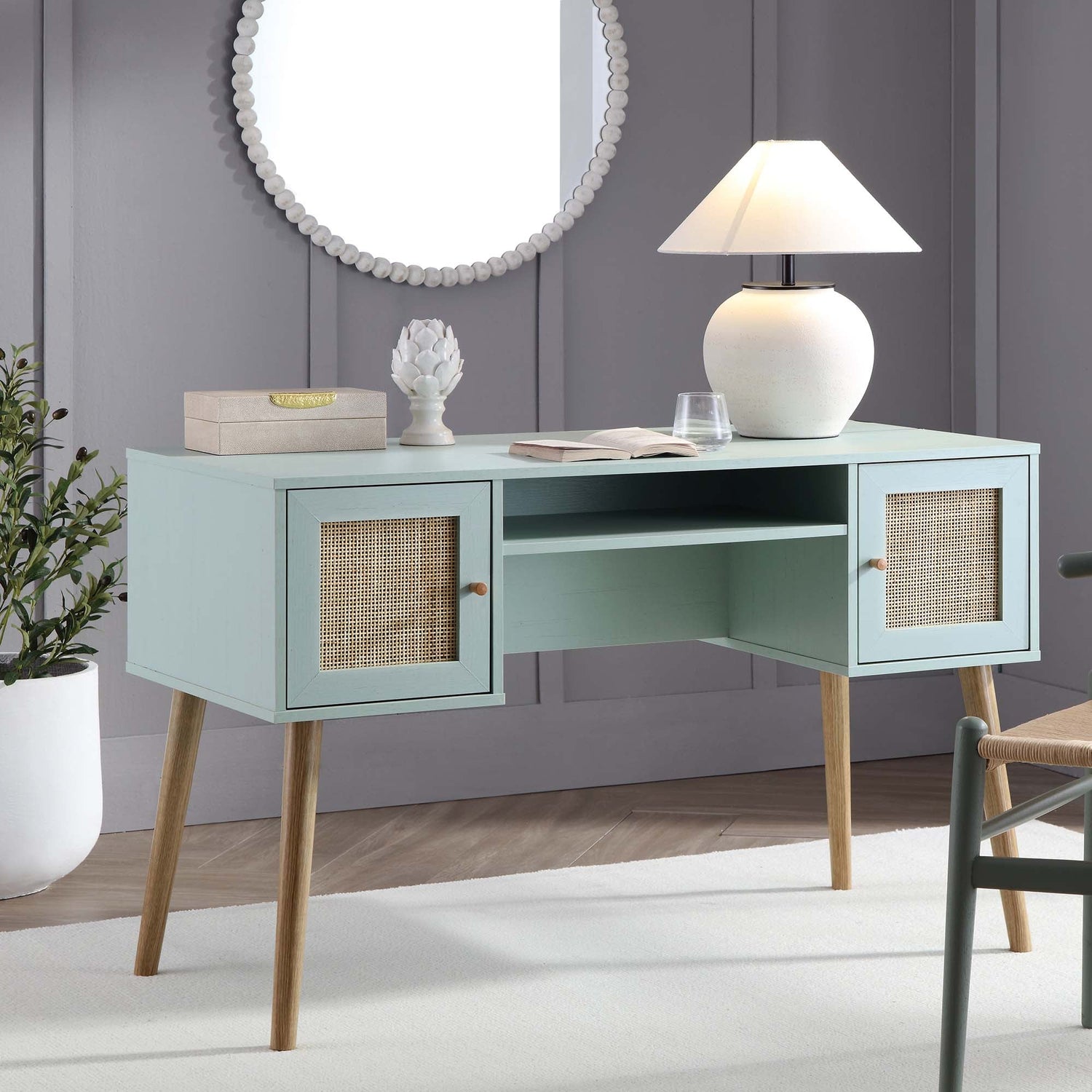 Chaise de bureau pivotante Beni Plus en maille avec coussin lombaire massant, vert