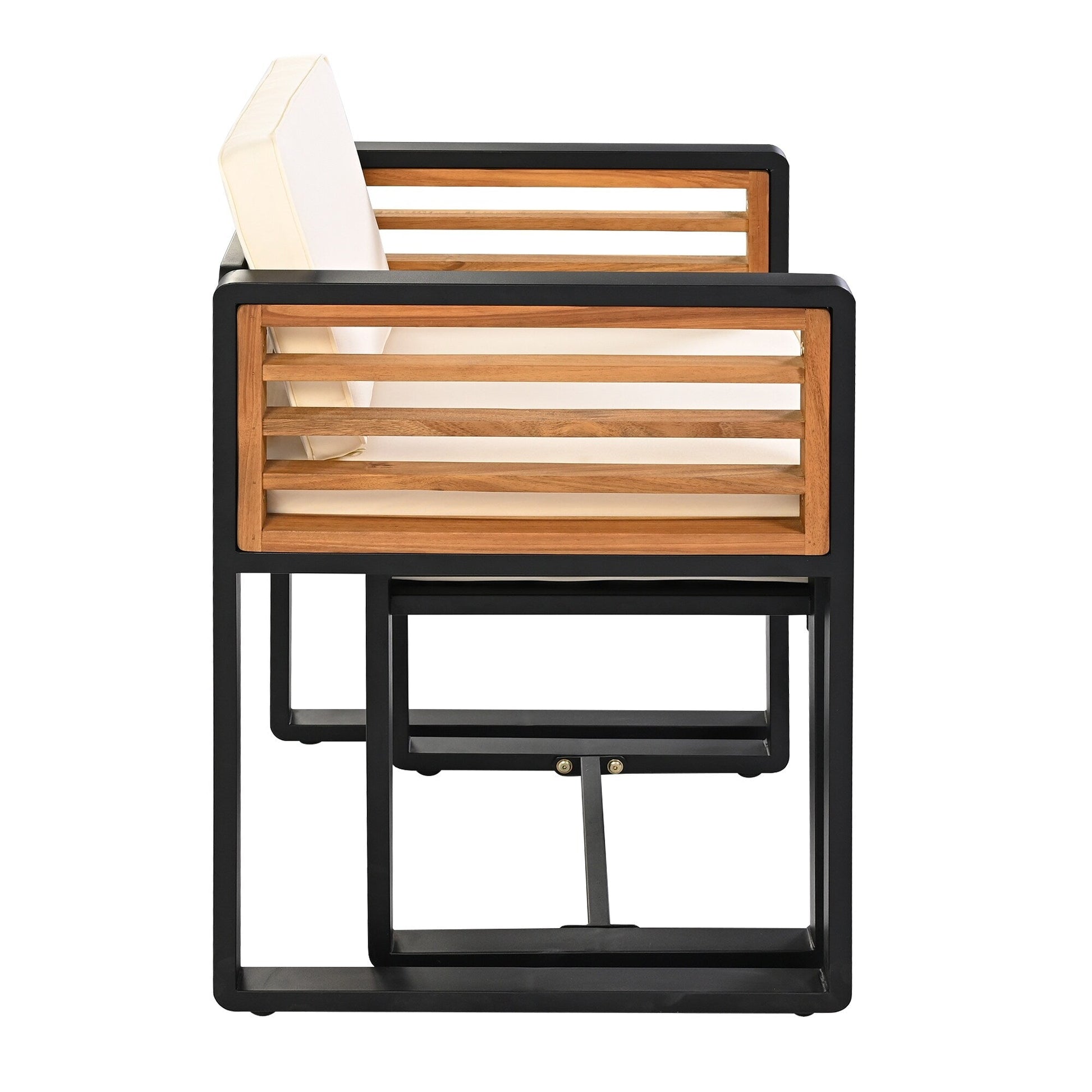 Matériaux durables et résistants aux intempéries : une structure métallique robuste et du bois d’acacia de première qualité garantissent durabilité et longévité, tandis que les dossiers sont suffisamment résistants pour supporter tous vos moments de détente. Un piètement en croix et des protections sous les pieds de la table améliorent sa stabilité et préviennent les dommages à votre terrasse.