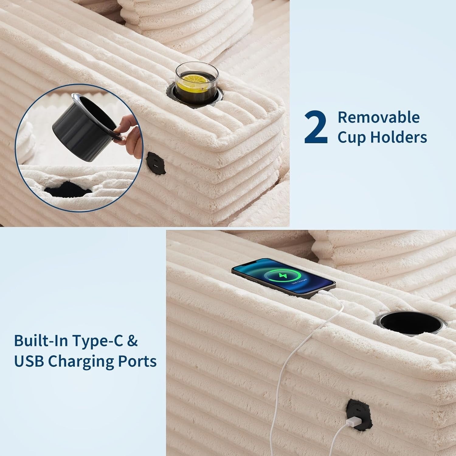 [Confort spacieux pour se détendre] Profitez d'une relaxation exceptionnelle avec cette méridienne surdimensionnée, dotée d'une assise généreuse de 137 cm de large et de 119 cm de profondeur. Parfaite pour lire, faire une sieste ou regarder des films, elle offre un espace généreux pour vous et vos proches. Son design spacieux garantit une expérience d'assise haut de gamme, ce qui en fait un ajout idéal aux salons, chambres ou espaces de divertissement. [Revêtement en velours côtelé haut de gamme et résistant] Confectionné en velours côtelé respirant de haute qualité, ce canapé-lit allie luxe et durabilité. Sa texture douce apporte une sensation de confort, tandis que la mousse haute densité et les ressorts ensachés à l'intérieur maintiennent la forme du fauteuil et offrent un soutien moelleux. Que vous jouiez, vous détendiez ou vous reposiez, le revêtement haut de gamme vous offre un confort et un style durables. [Soutien ergonomique complet du corps] Conçue pour votre confort, la méridienne surdimensionnée est dotée d'une assise profonde et ergonomique qui soutient tout votre corps. Ce fauteuil favorise la détente pour lire, méditer ou décompresser après une journée chargée. Sa structure encourage une posture saine et réduit la fatigue, vous procurant une sensation de fraîcheur et de confort même lors d'une utilisation prolongée. [Fonctionnalités pratiques intégrées] Restez connecté sans effort grâce aux ports de chargement intégrés au fauteuil, vous permettant de recharger vos appareils tout en vous relaxant. Les porte-gobelets amovibles ajoutent de la praticité, vous permettant de savourer vos boissons préférées sans avoir besoin de meubles supplémentaires. Ces fonctionnalités bien pensées améliorent votre expérience de détente, idéale pour faire plusieurs choses à la fois tout en lisant ou en regardant la télévision. [Montage simple et design moderne et élégant] Ce fauteuil méridienne moderne se monte facilement grâce à un processus d'assemblage simple, vous permettant de vous détendre rapidement. Son design élégant et contemporain s'harmonise avec différents styles d'intérieur, ajoutant sophistication et confort à n'importe quel espace. Que ce soit dans un salon, un bureau ou une chambre, c'est une solution d'assise élégante et pratique.