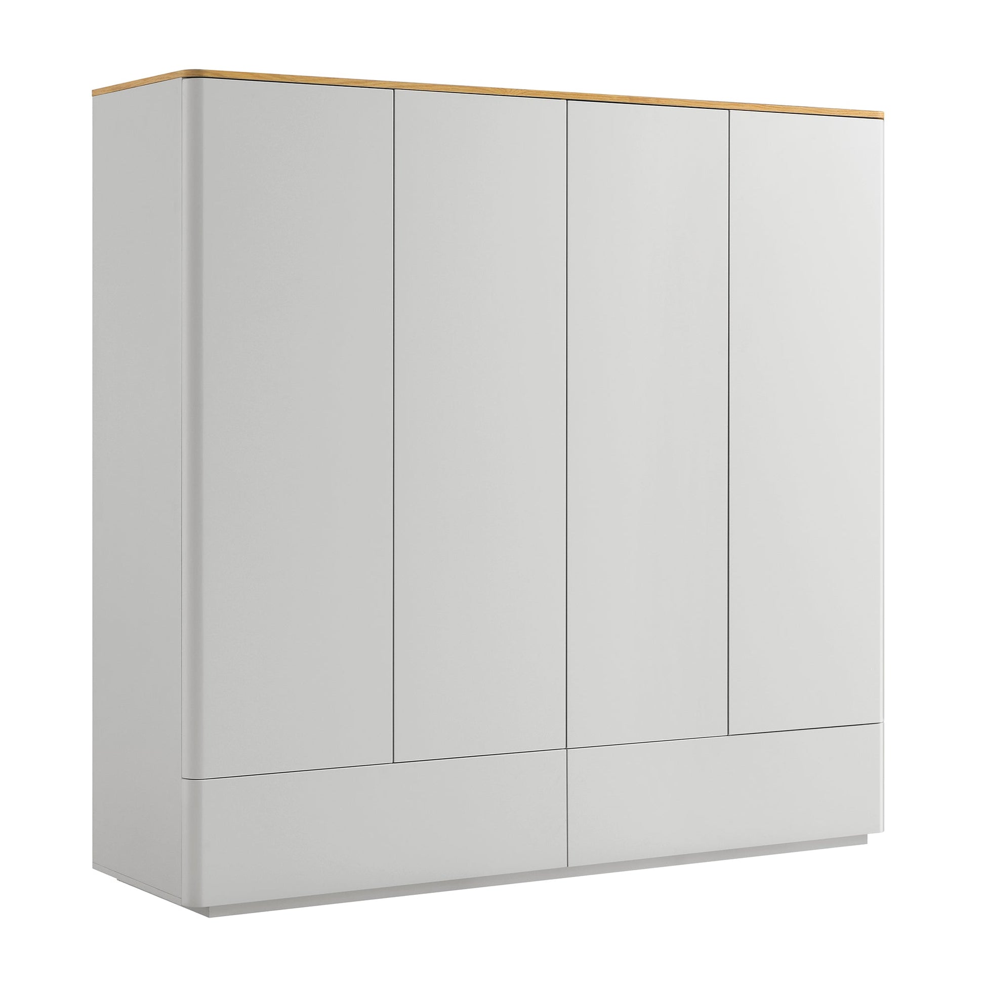 Armoire 4 portes à bords incurvés Agnes, gris tourterelle avec plateau en chêne