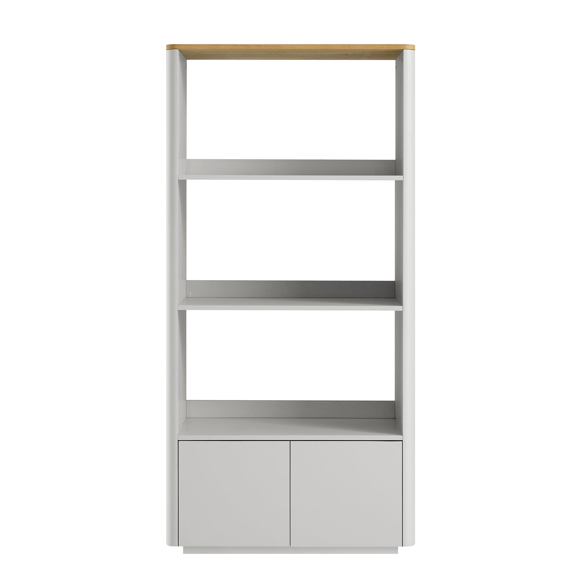 Bibliothèque à bords incurvés Agnes, gris tourterelle avec plateau en chêne
