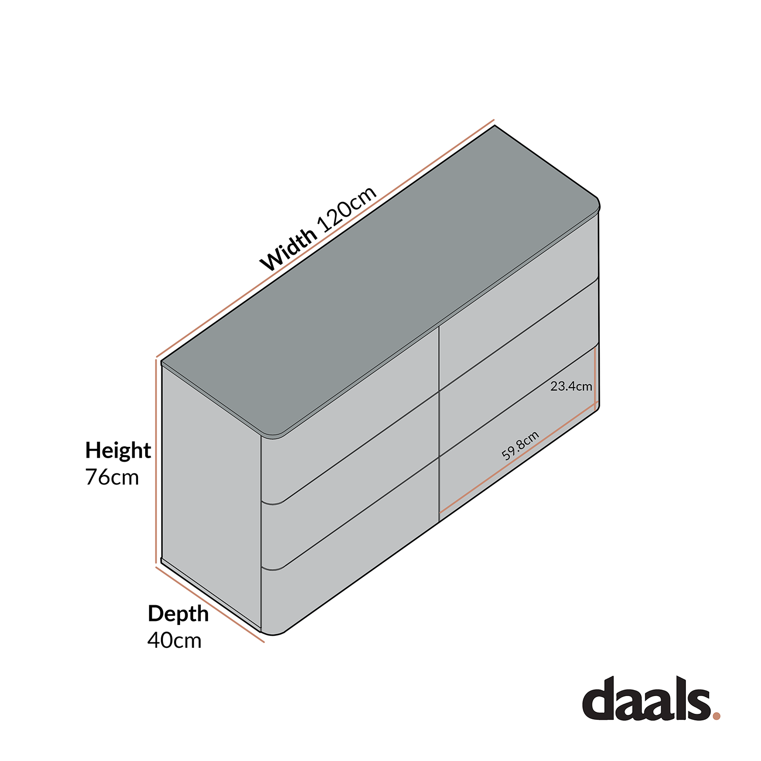 - Cette commode offre 6 tiroirs sur glissières métalliques pour un rangement pratique et un espace de rangement ordonné. Son ouverture par pression remplace astucieusement les poignées pour un style épuré.