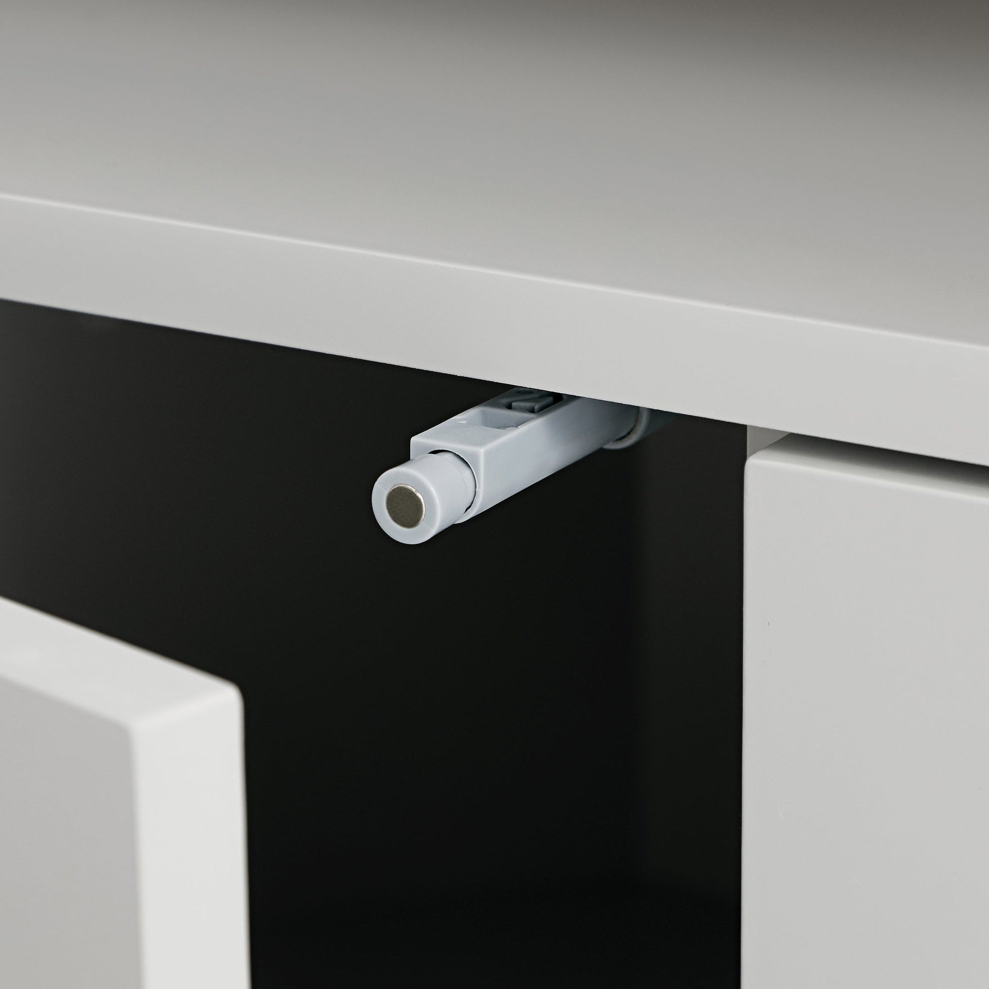 - Les portes d'armoire à ouverture par poussée confèrent à l'unité un aspect épuré et sans poignée.