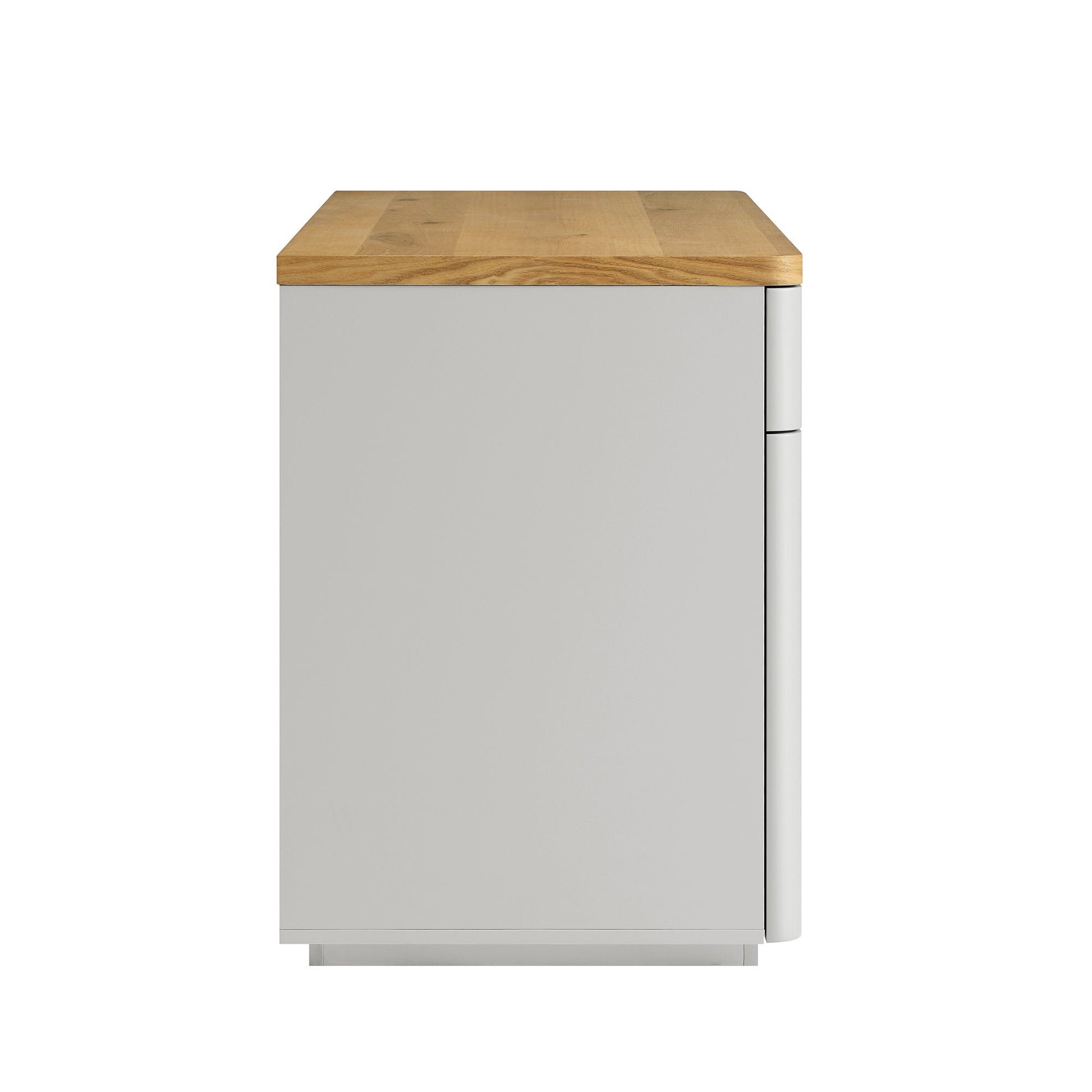 Bureau Agnes à bords incurvés avec rangement, gris tourterelle et plateau en chêne