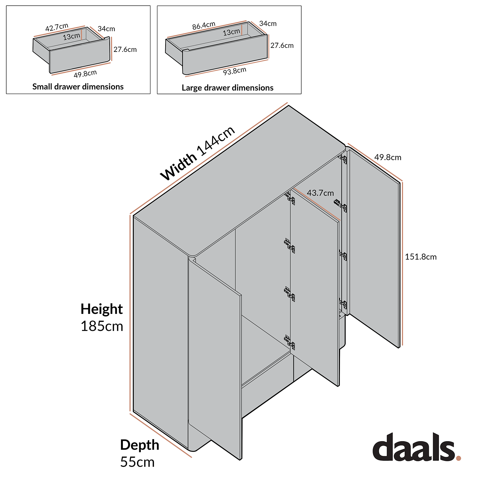 - Dotée de deux compartiments avec tringle de suspension ainsi que de deux tiroirs spacieux, l'armoire offre de nombreux espaces de rangement.