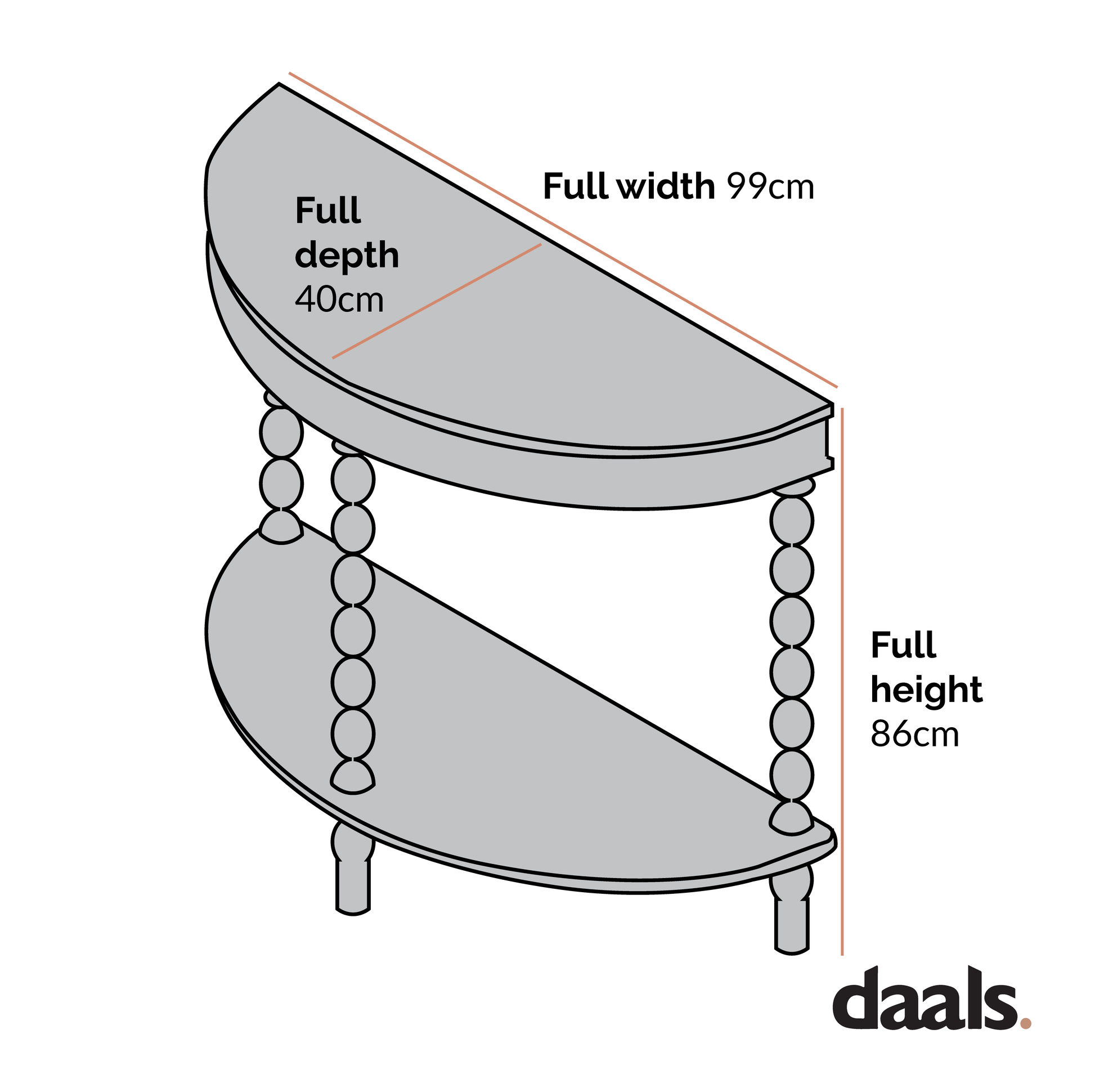 - La forme demi-lune est un bel économiseur d'espace, parfait pour le couloir, derrière le canapé, etc. La table est livrée avec une fixation murale pour éviter tout basculement.