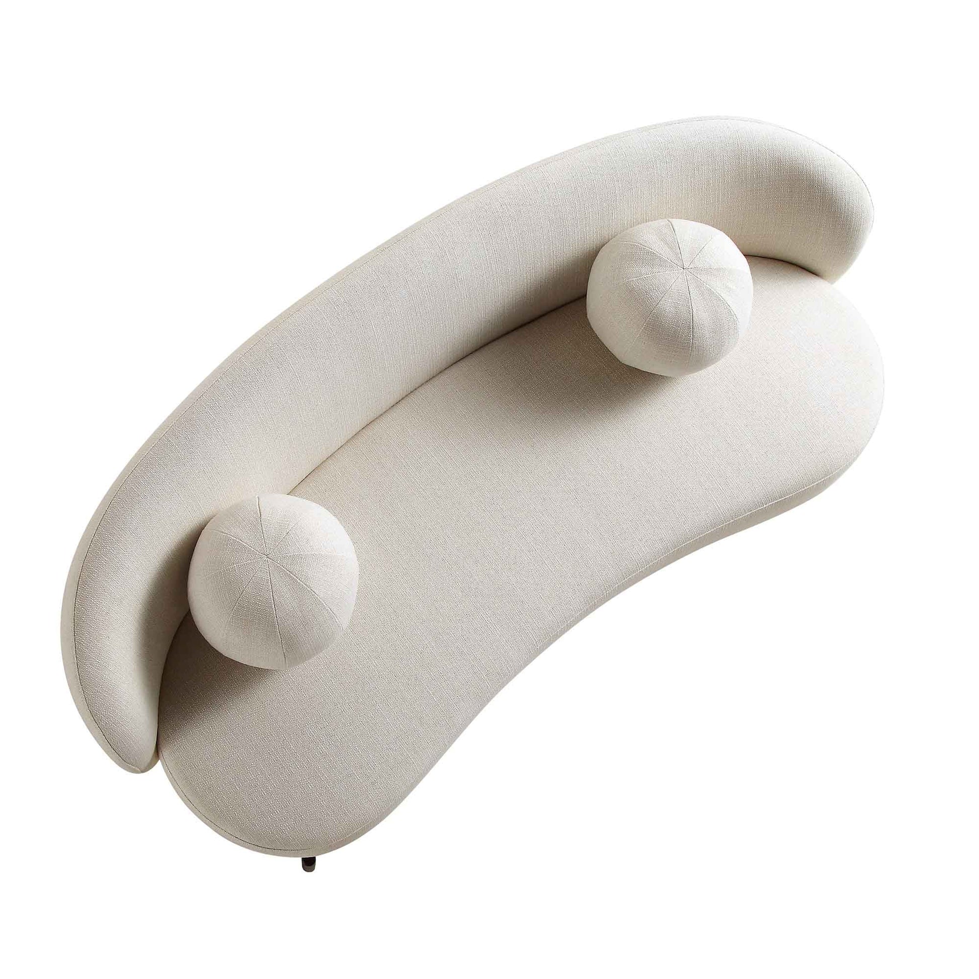Canapé Amboise 3 places incurvé avec coussins boules, mélange de lin beige