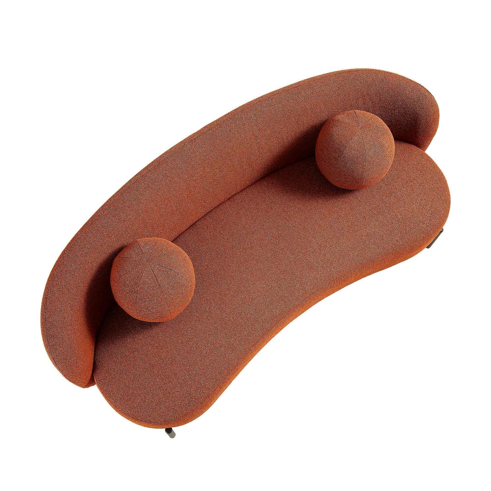 Canapé Amboise 3 places incurvé avec coussins boules, motif brique bouclé