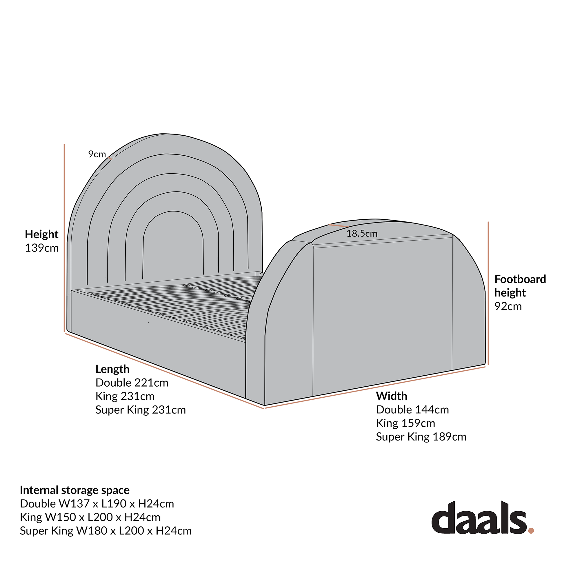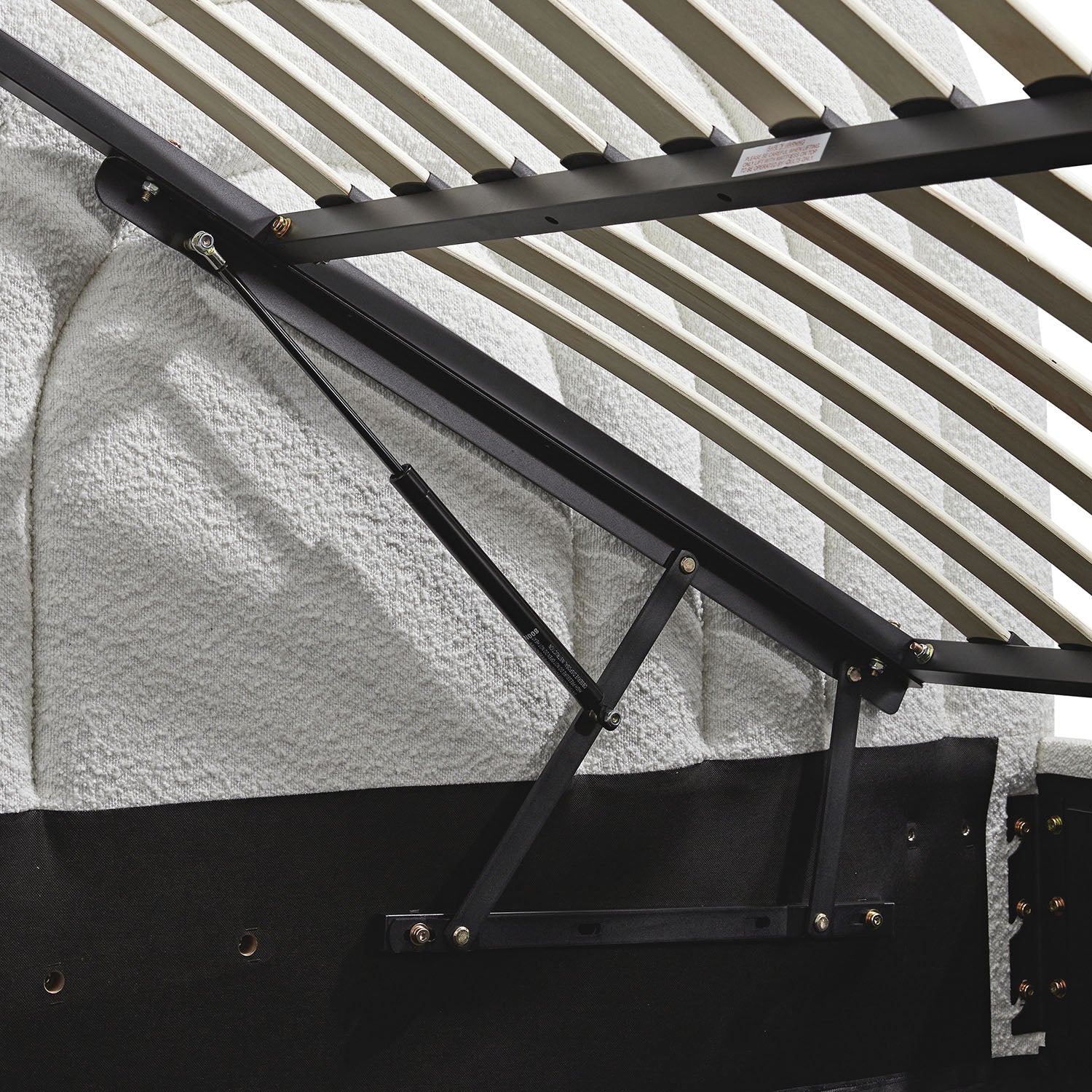 - Courbé, sculptural et moderne sans effort, le lit TV Archer White Boucle avec rangement ottoman allie style, confort et technologie dans un design saisissant.