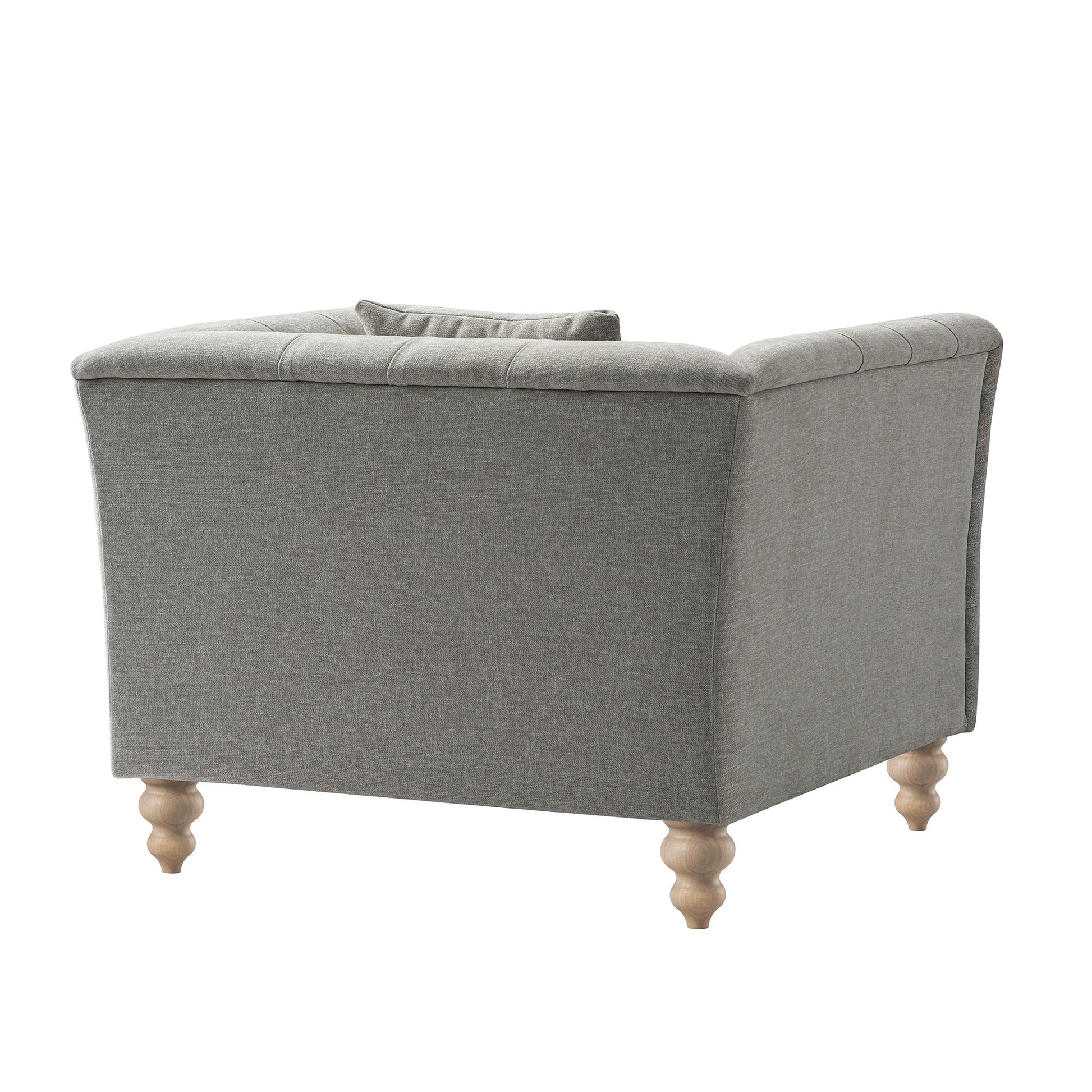 - Doté d'un dossier et d'accoudoirs touffetés opulents, le fauteuil offre un siège profond et rembourré offrant un bon soutien.