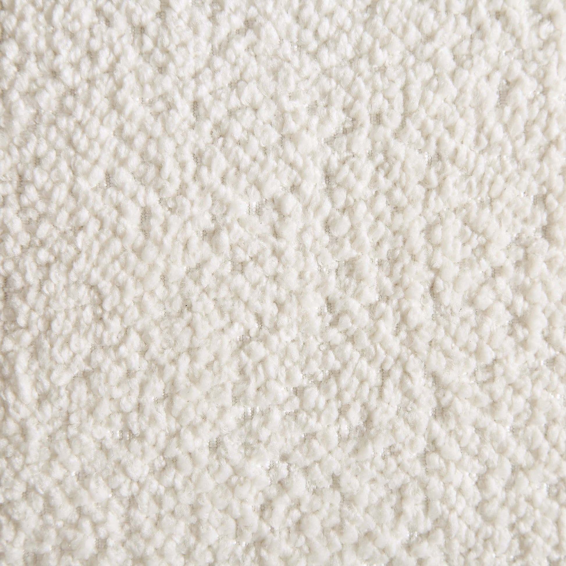 - Tissu bouclé beige tactile associé à une base en bois massif dans une teinte naturelle mate pour un look chaleureux et agréable à l'œil