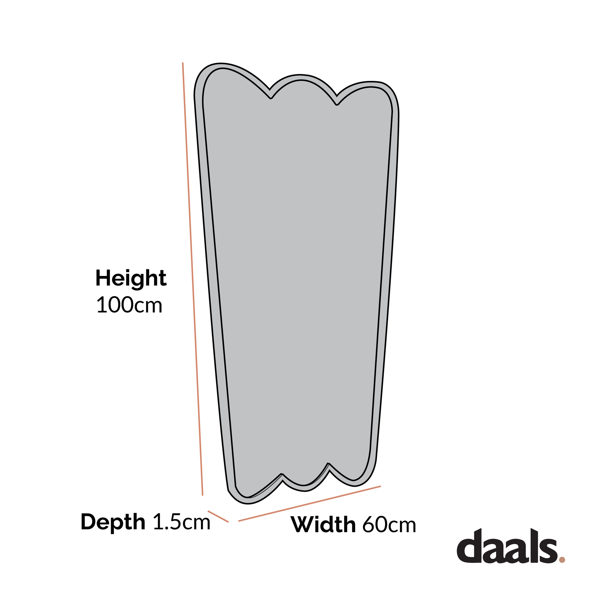- Matériau : verre miroir, cadre en résine, support en MDF