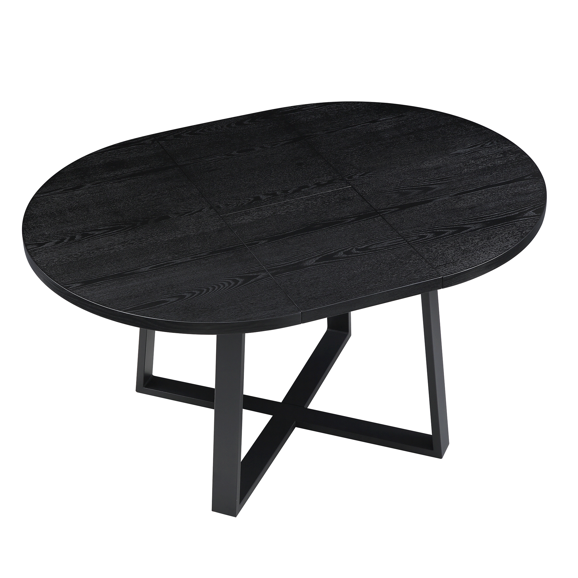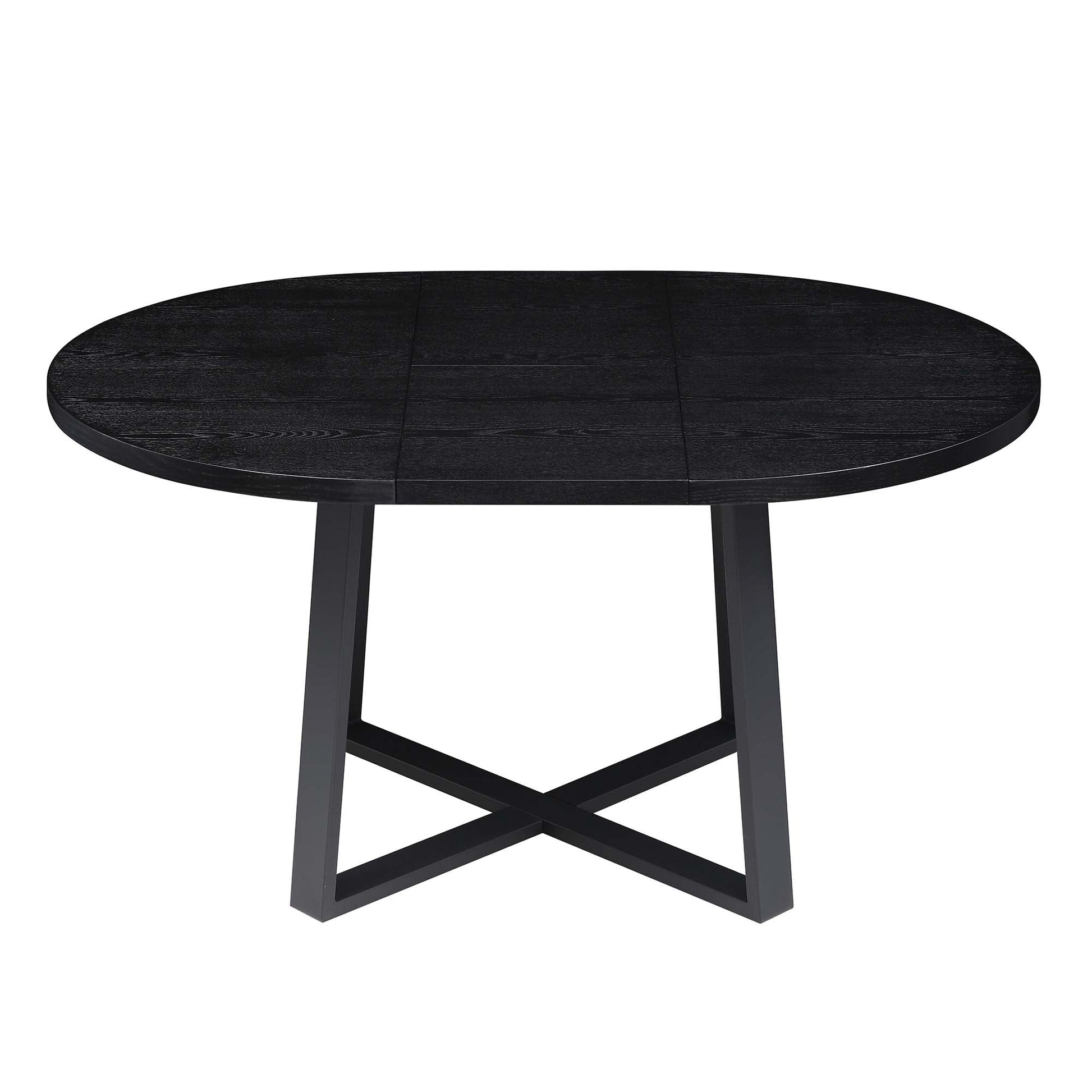 Table à manger ronde extensible BERN avec pieds en métal, noire