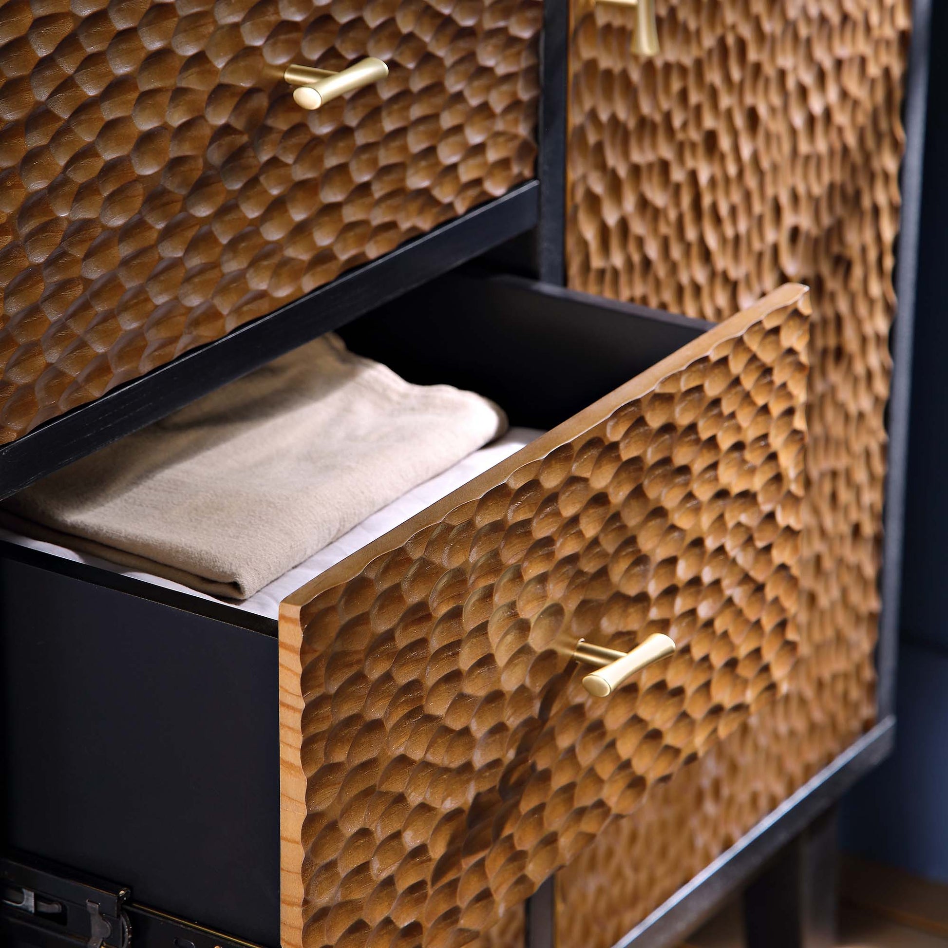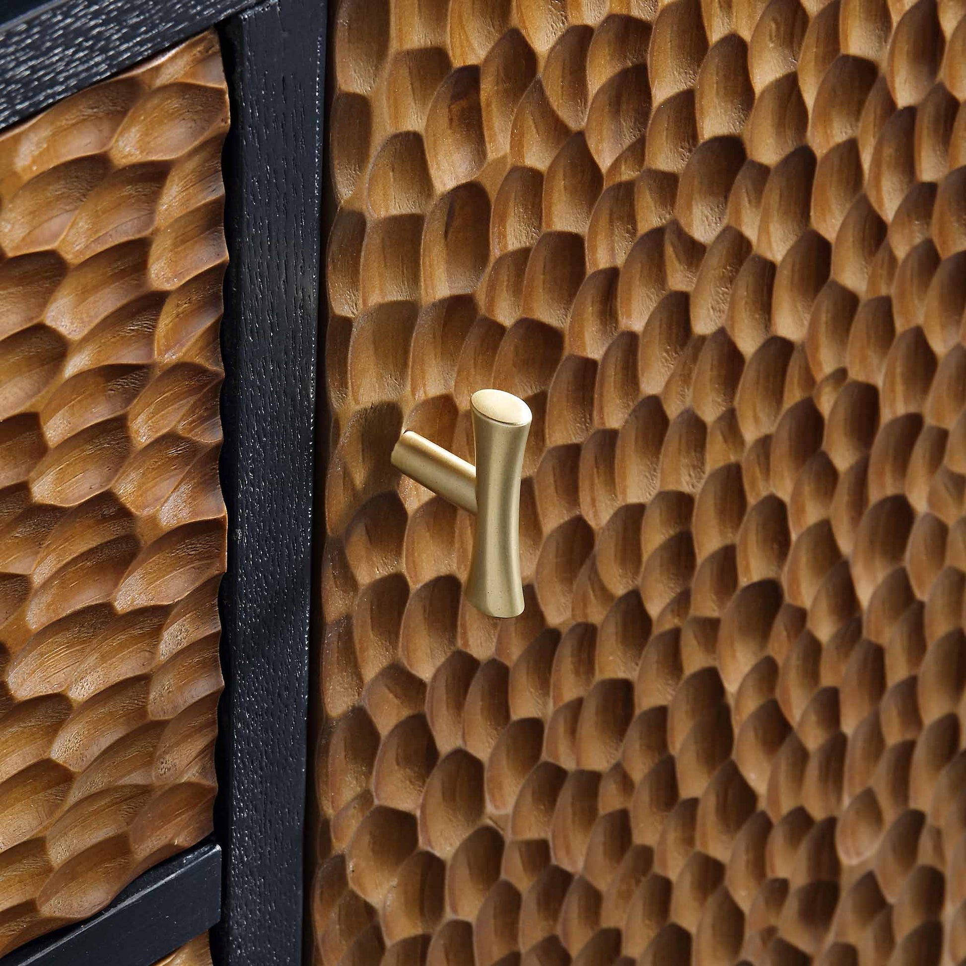 Buffet Bianca Chip sculpté à 1 porte et 3 tiroirs, bronze antique et noir
