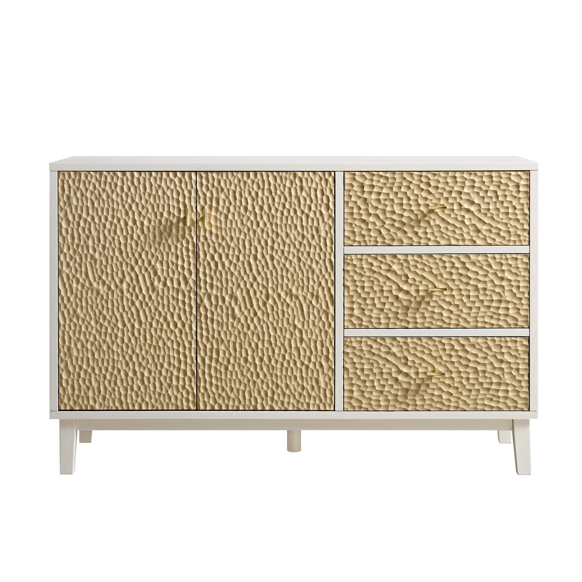 Buffet sculpté Bianca Chip, 2 portes et 3 tiroirs, beige sable et ivoire