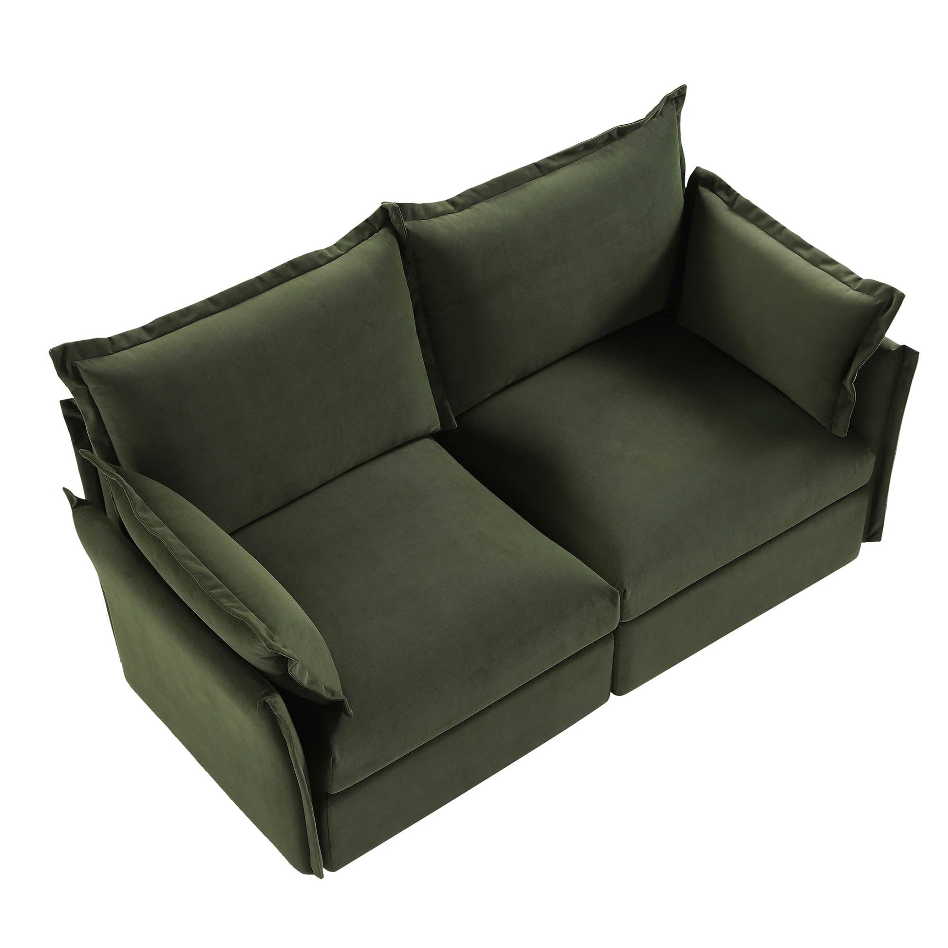 Canapé modulable Byron Pillow Edge en velours vert mousse, 2 places