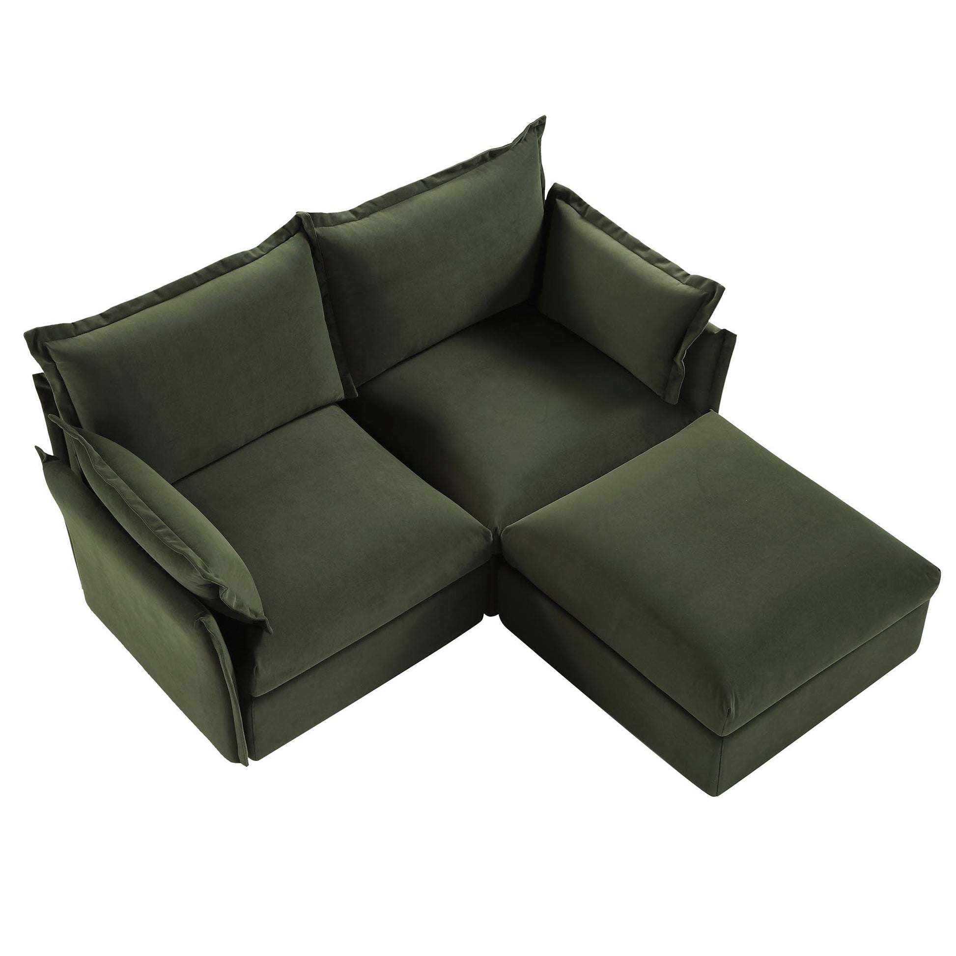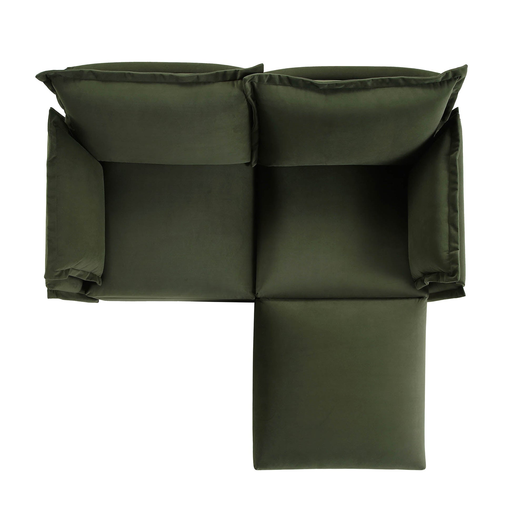 Canapé modulaire Byron Pillow Edge en velours vert mousse, méridienne 2 places