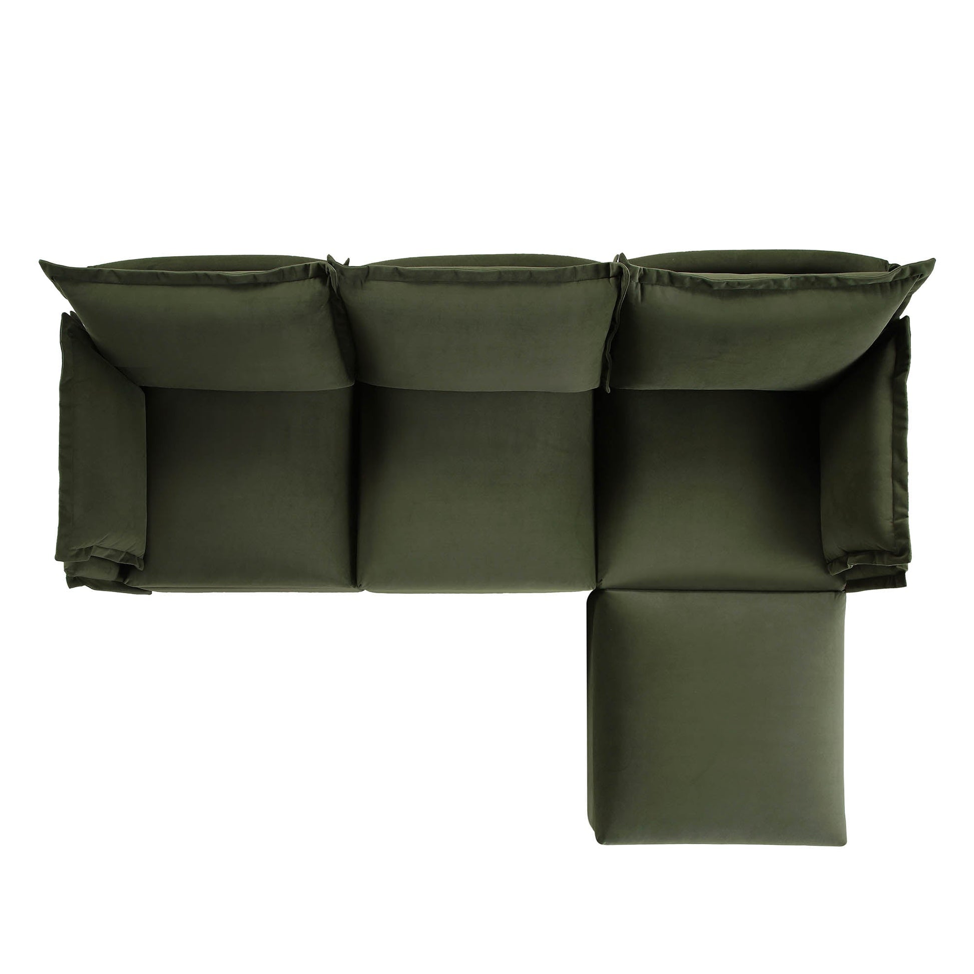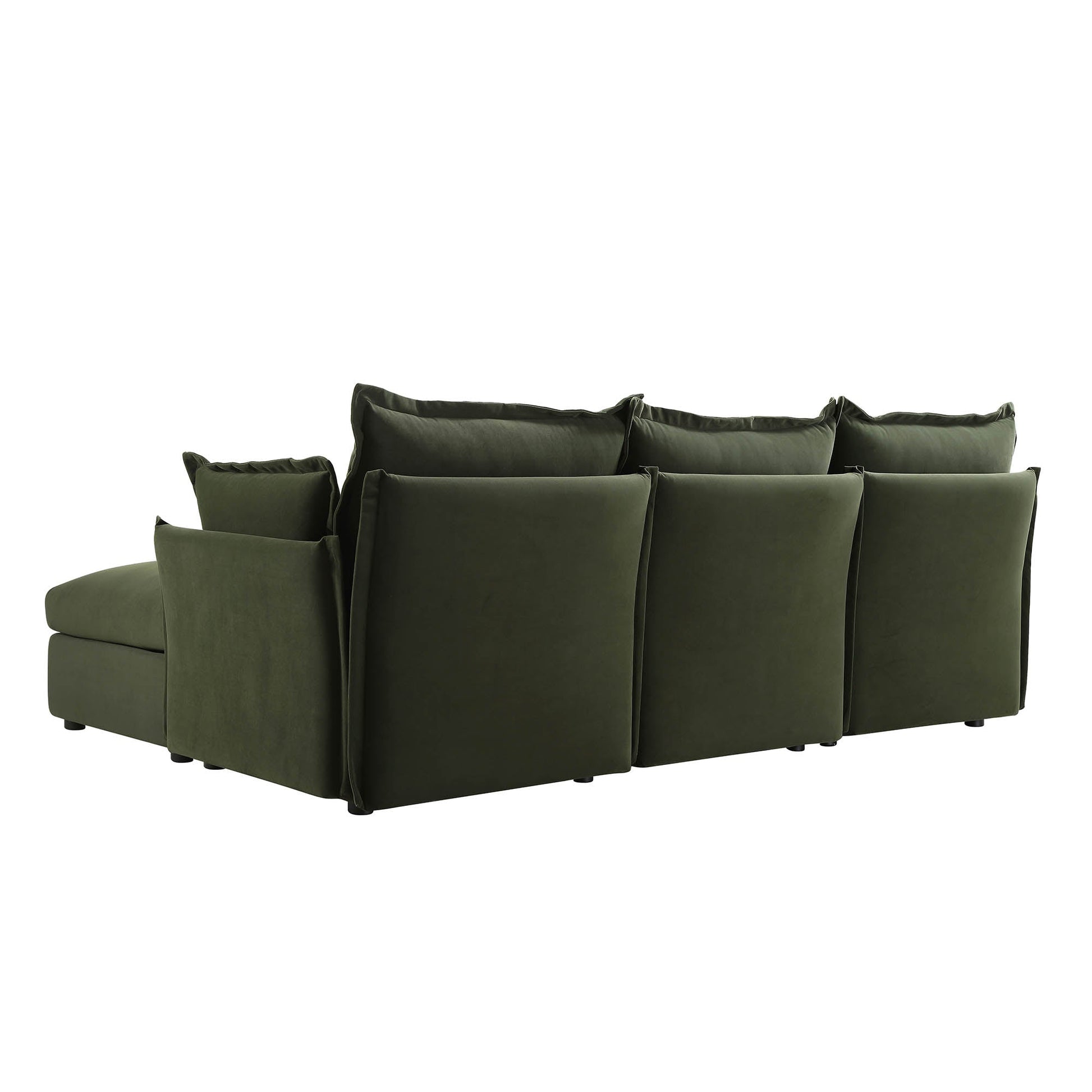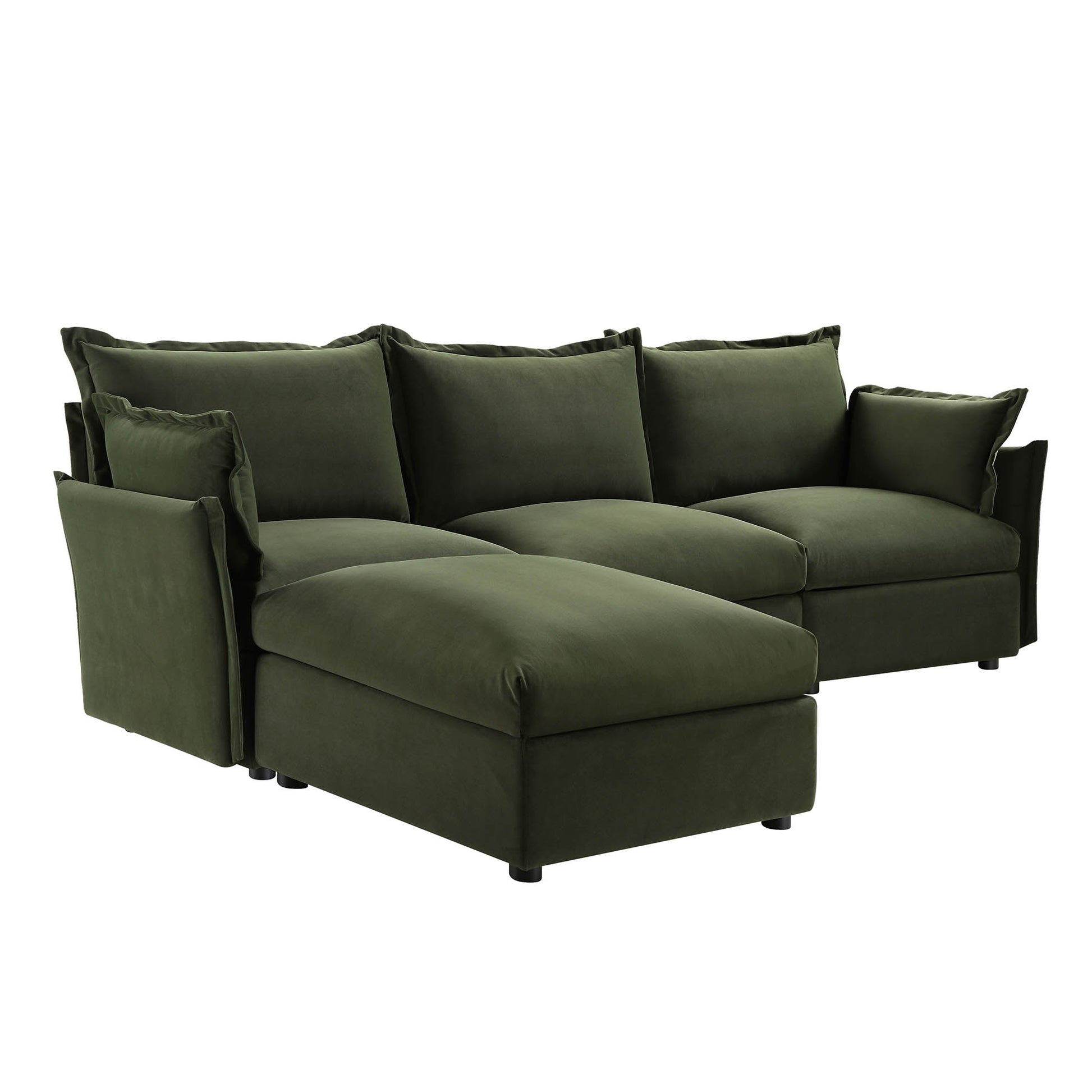 Canapé modulaire Byron Pillow Edge en velours vert mousse, méridienne 3 places
