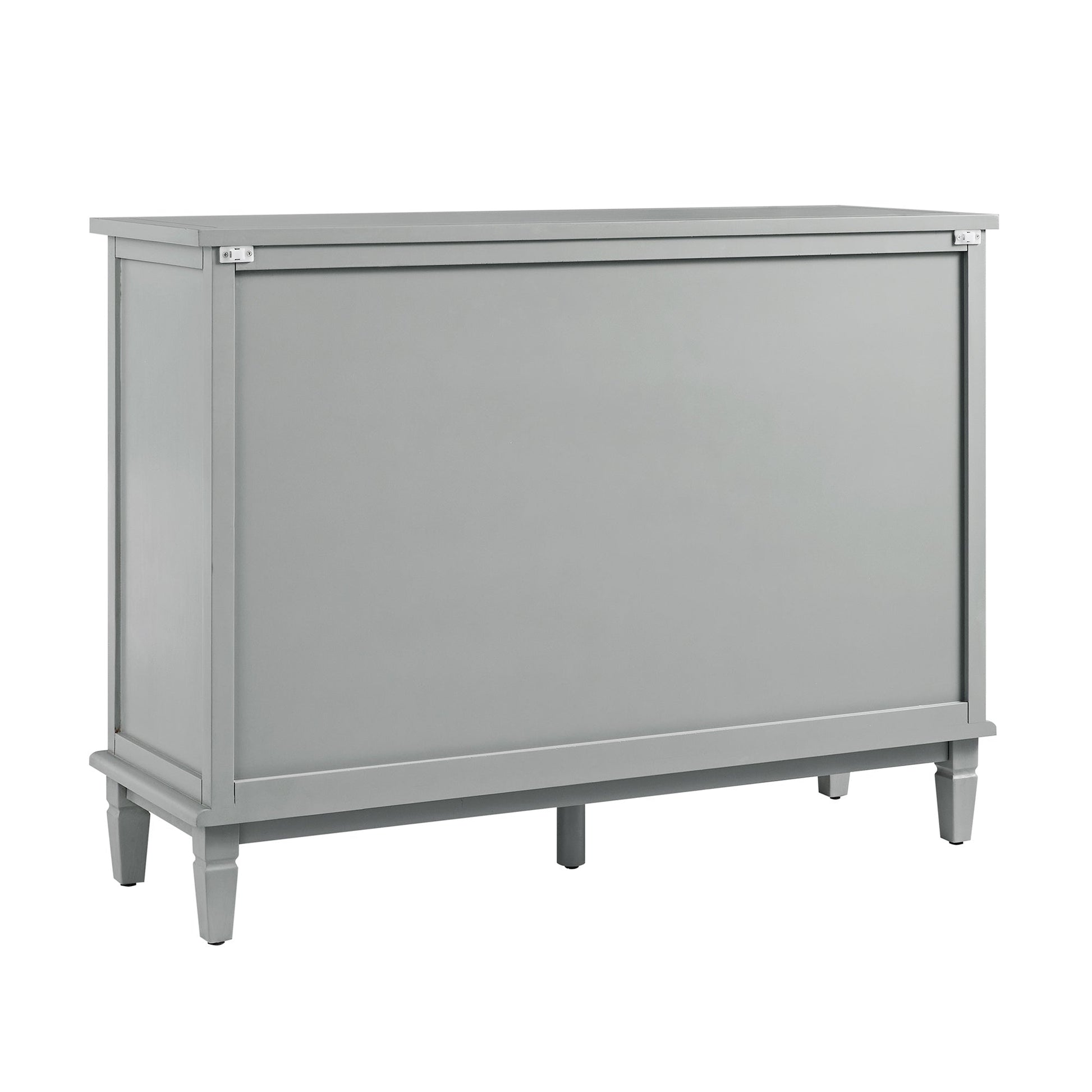 - Déclaration d'art sculpté et d'élégance intemporelle, la commode à 3 sur 4 tiroirs Chantilly en gris moyen équilibre un caractère audacieux avec une palette de couleurs apaisantes.