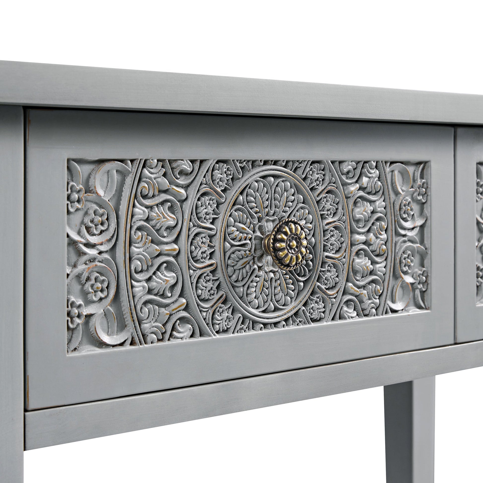 - Réinterprétation romantique du classique, la console sculptée Chantilly en gris moyen apporte un charme intemporel à votre couloir, chambre ou espace de vie.
