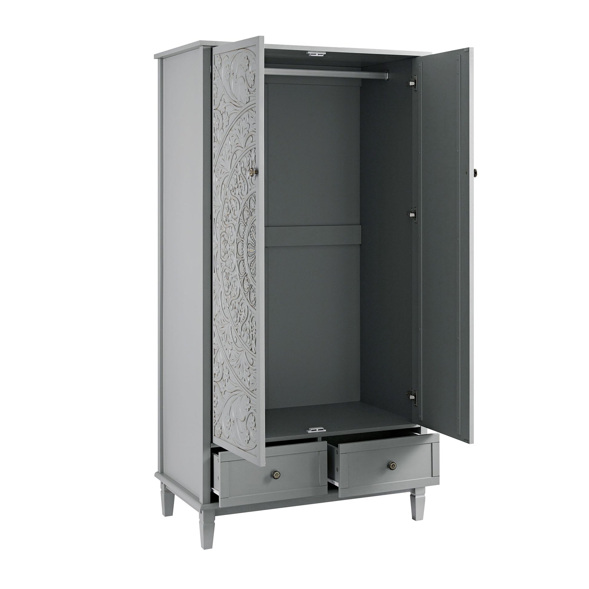 Armoire double sculptée Chantilly gris moyen