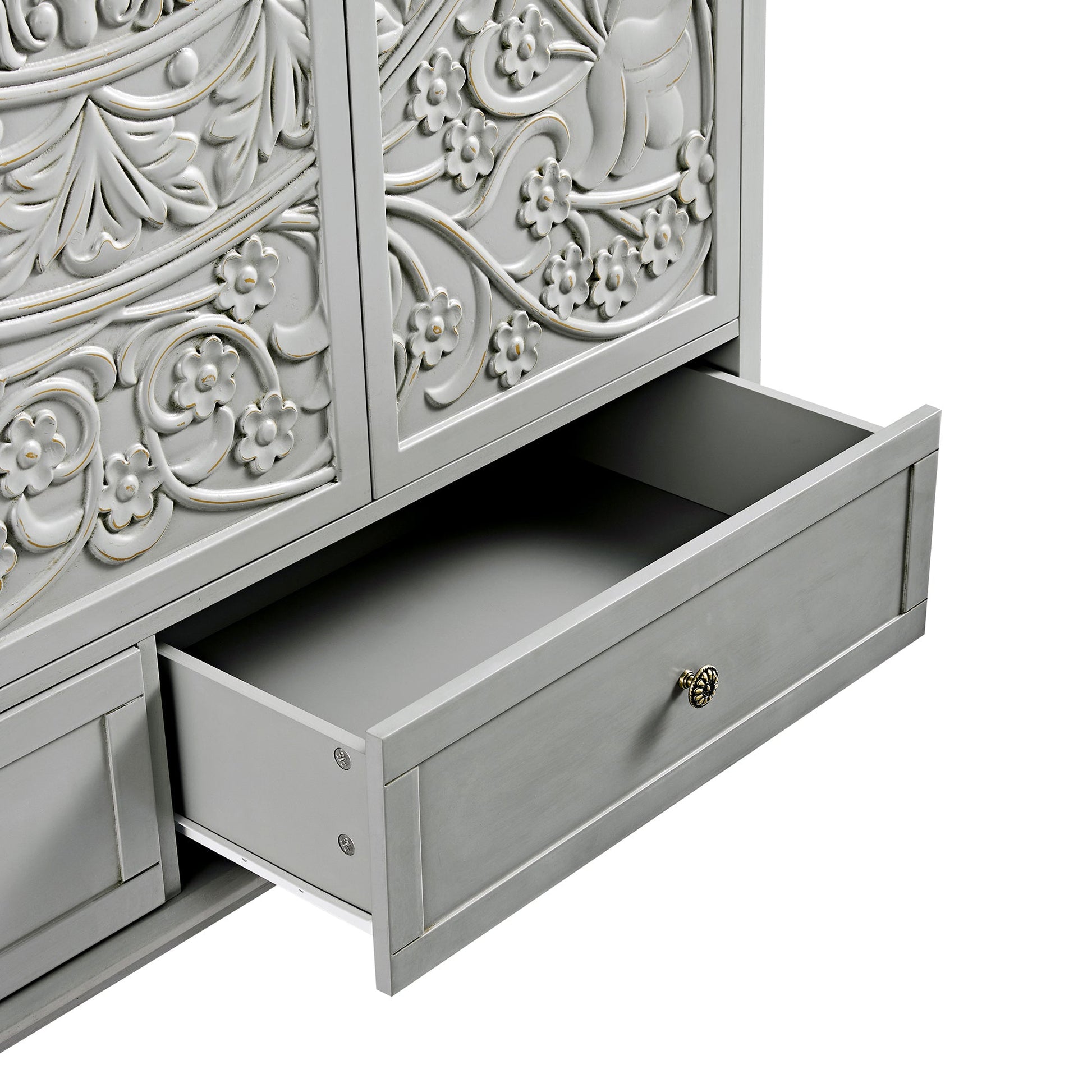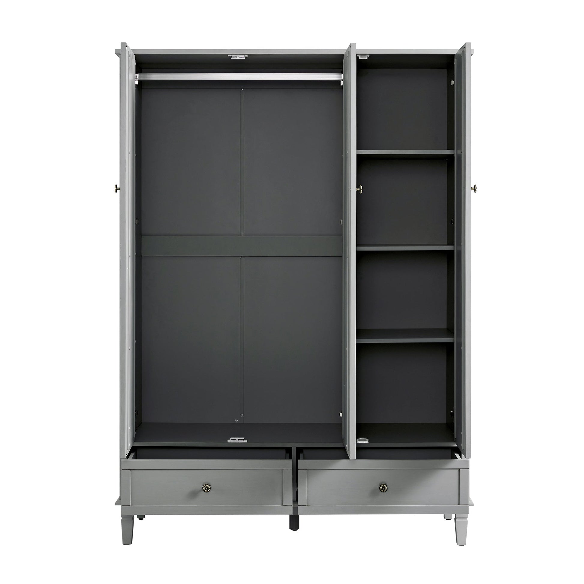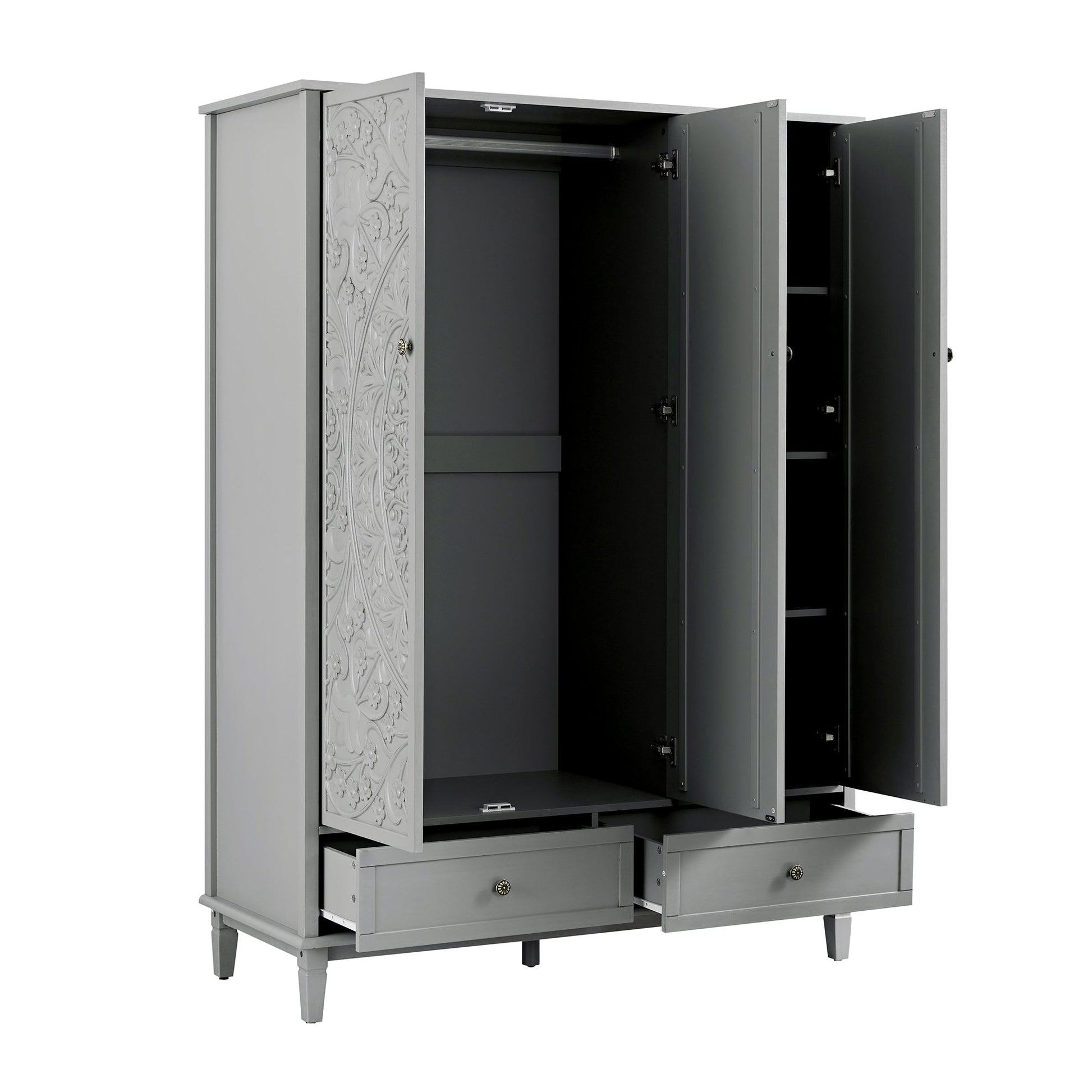 - Ornée et sereine en présence, notre armoire triple Chantilly en gris moyen réunit de beaux détails et un espace de rangement généreux en parfaite harmonie.