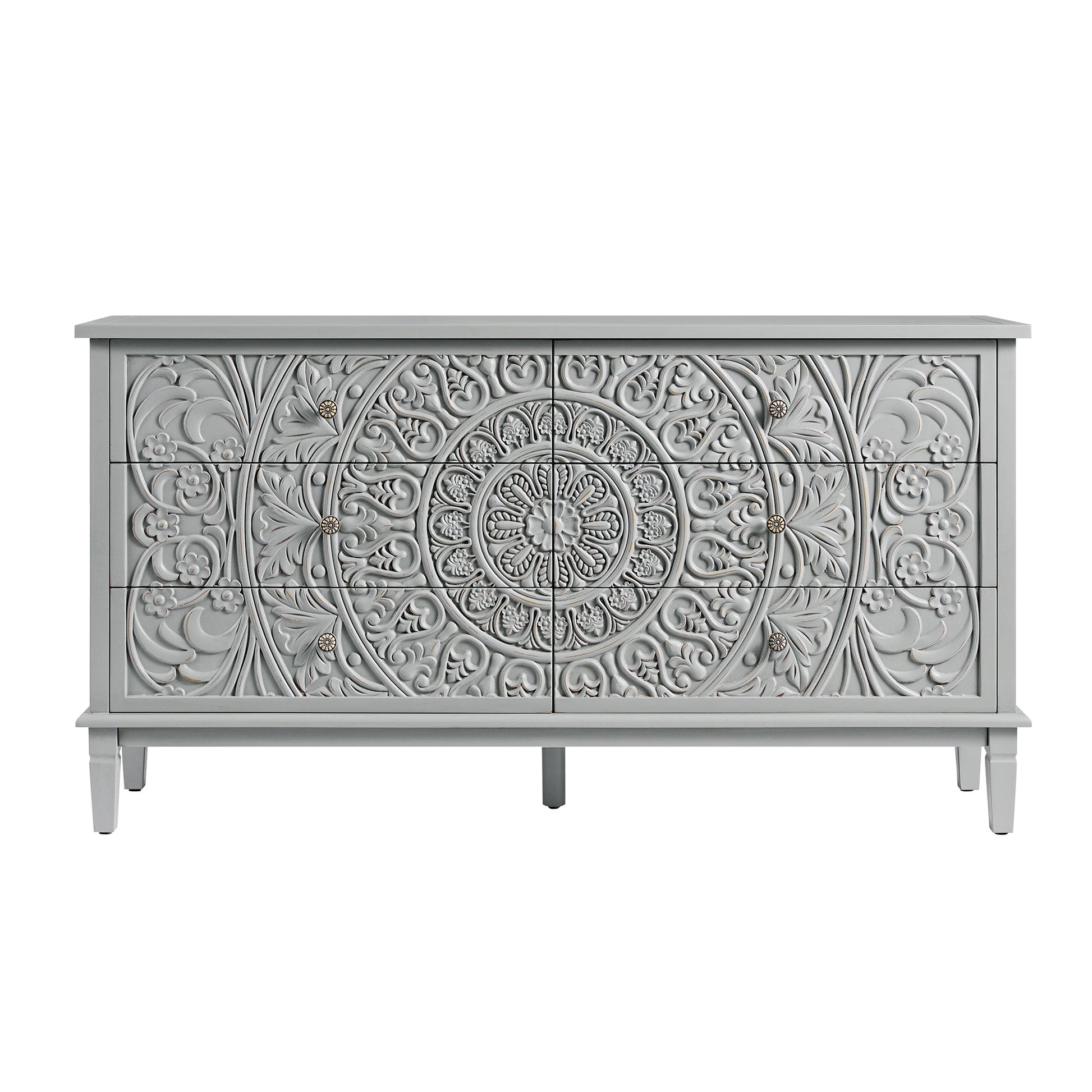 - L'art et l'utilité se marient à merveille dans la commode large à 6 tiroirs Chantilly, désormais disponible dans une finition gris moyen intemporelle.