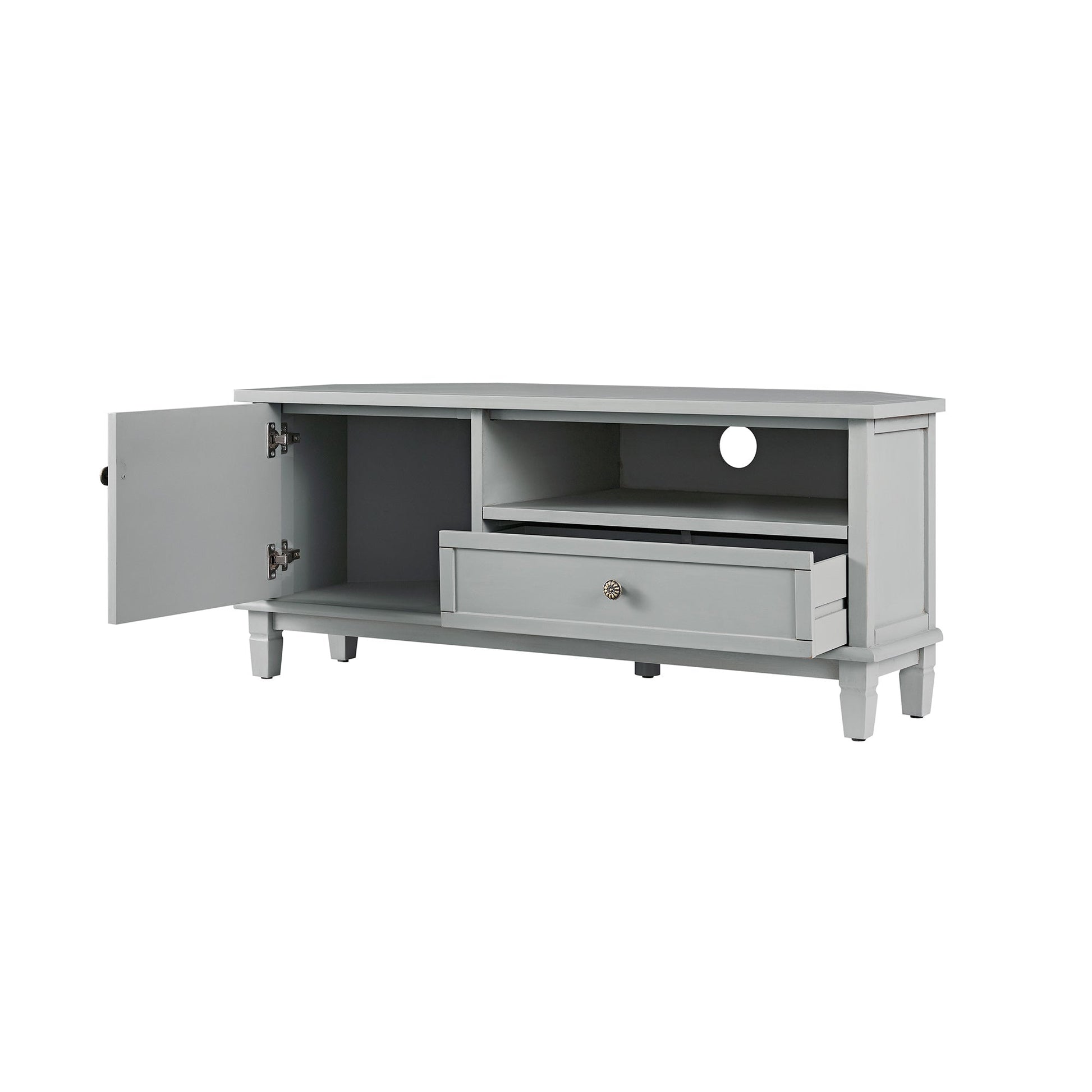 - D'une conception peu encombrante avec un charme artisanal, notre meuble TV d'angle Chantilly s'intègre parfaitement dans les coins tout en ajoutant du caractère à votre espace de vie.