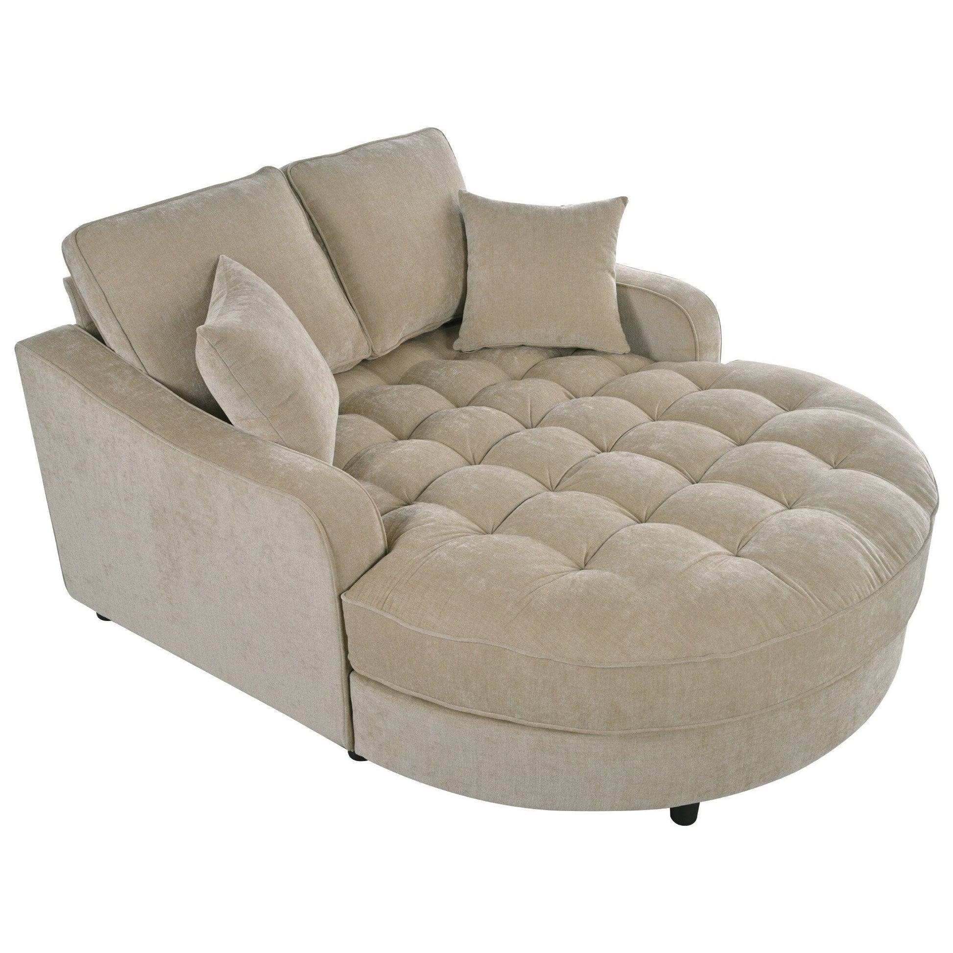 Canapé-lit méridienne en chenille, canapé rembourré avec dossier capitonné et 2 coussins amovibles pour salon