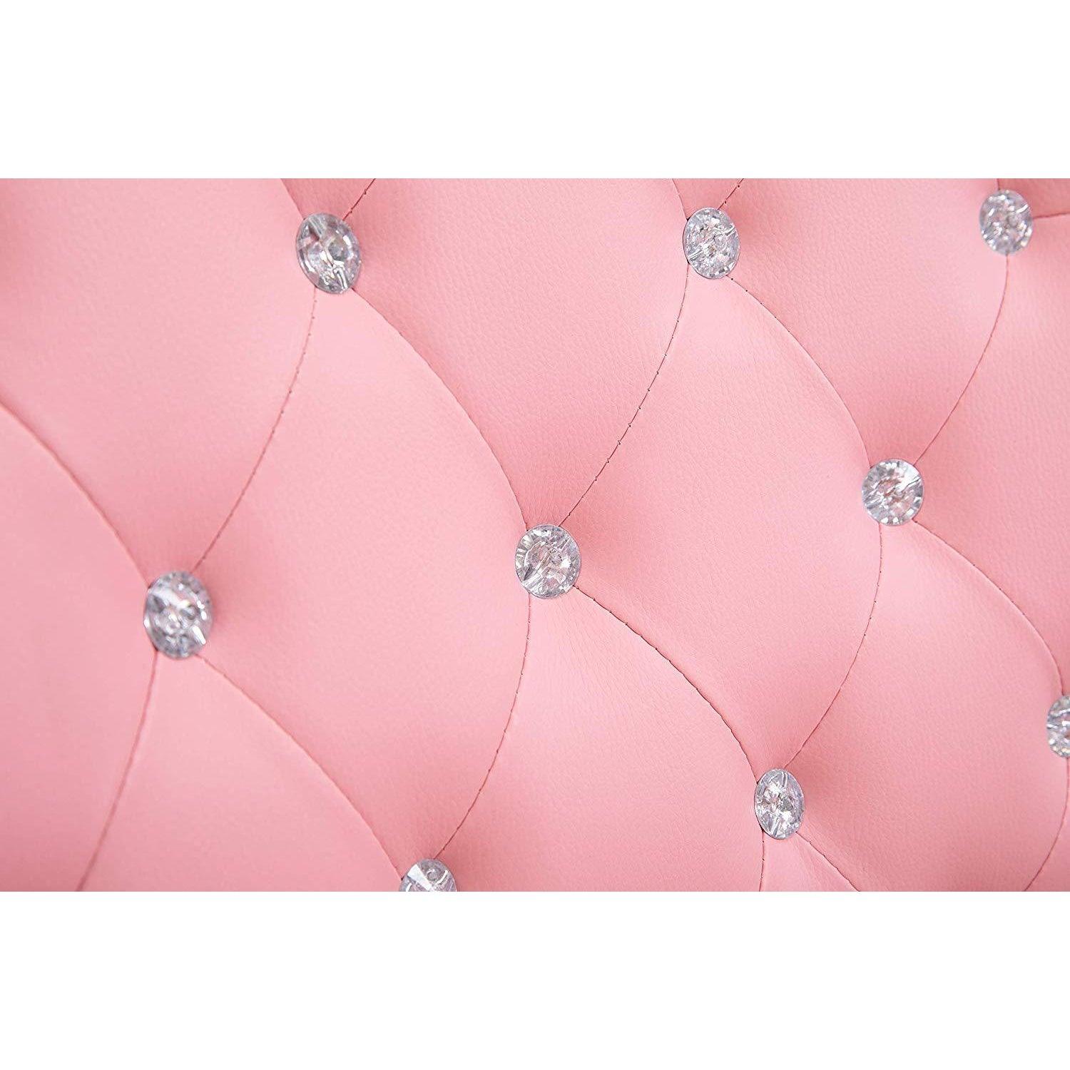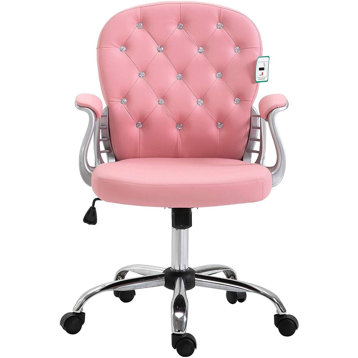 - Cette chaise de bureau élégante est dotée d'un dossier boutonné en diamant et d'un revêtement en similicuir rose