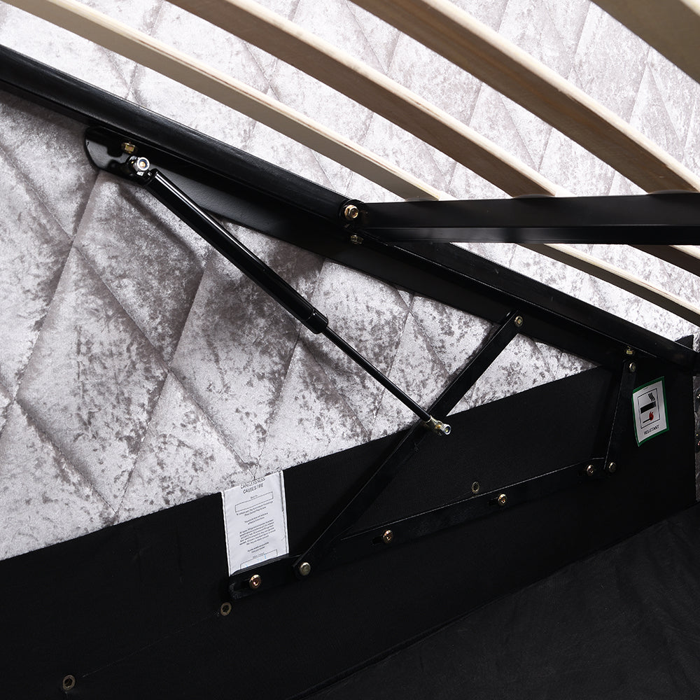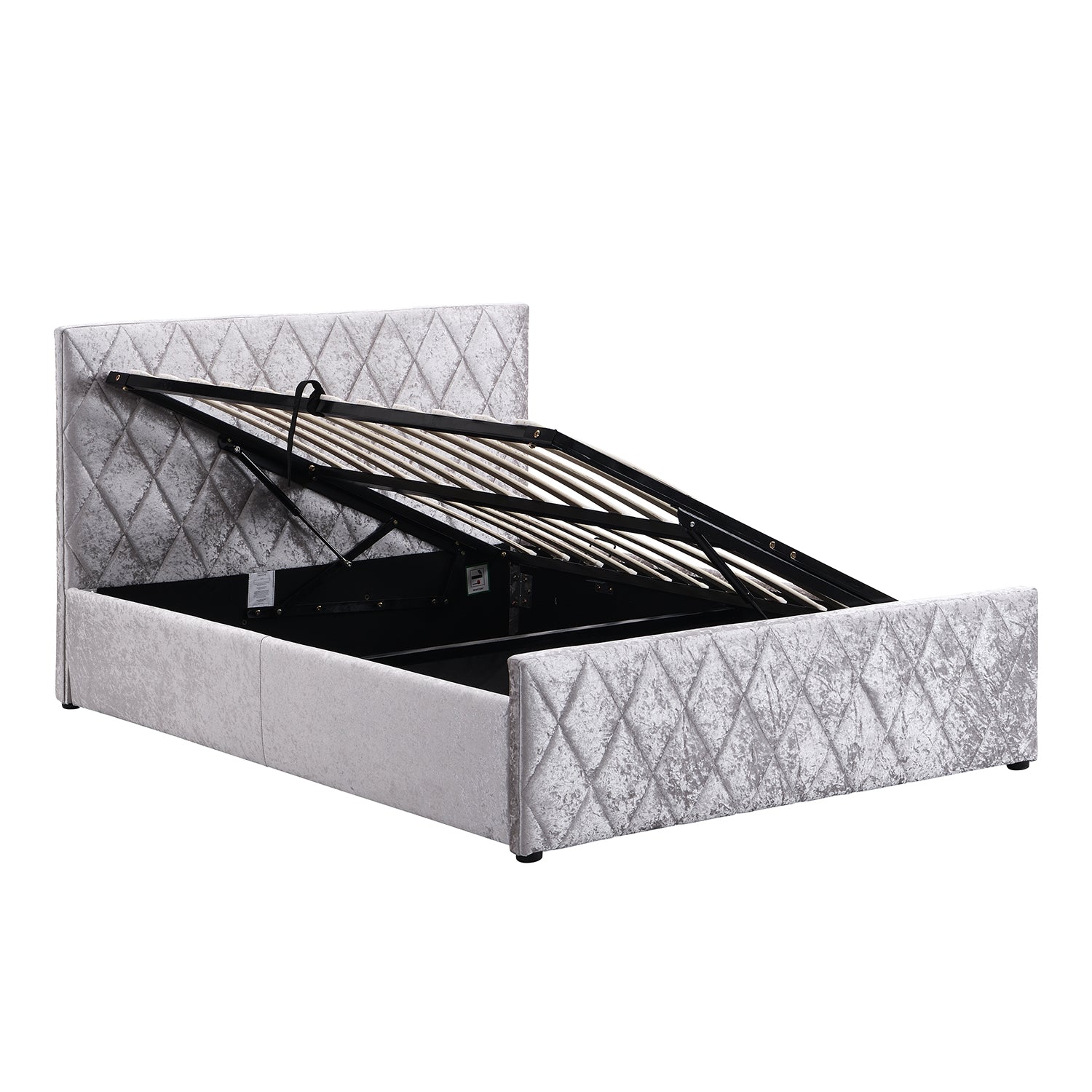 Cadre de lit rembourré en velours écrasé Hayden avec rangement latéral relevable, argent