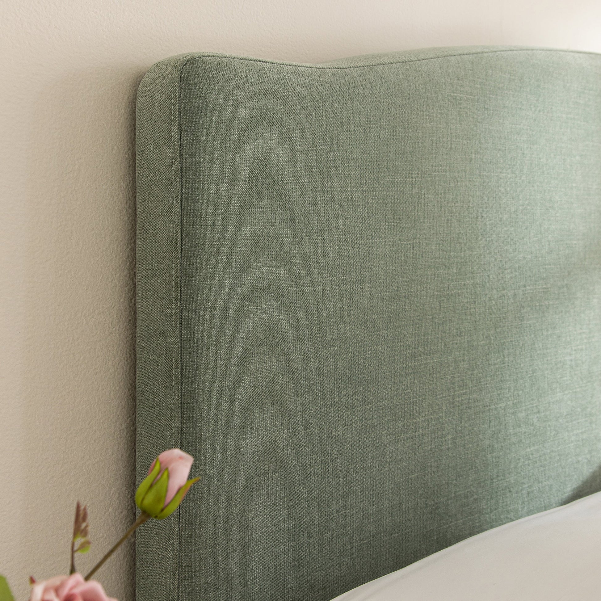 - Sa tête de lit légèrement arquée ajoute une touche d'élégance sans surcharger la pièce, tandis que des lignes épurées et ininterrompues gardent l'aspect général léger et moderne.