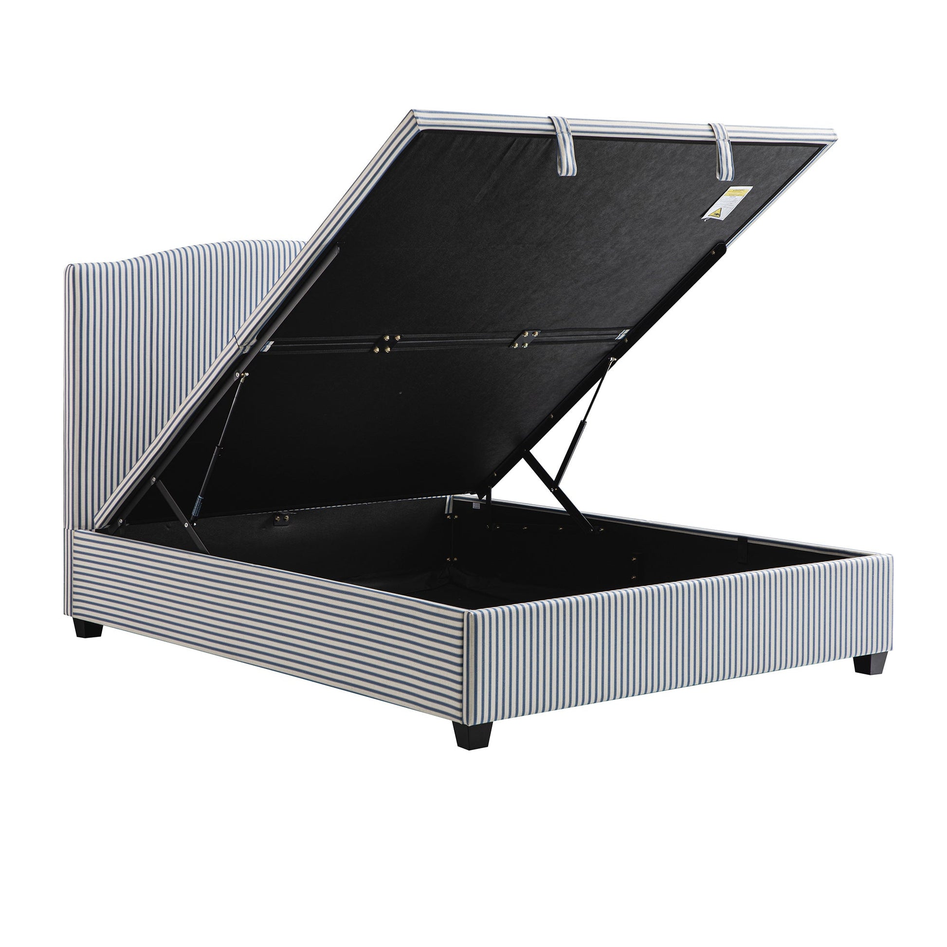 Lit ottoman rembourré Chilworth, mélange de lin à rayures bleues