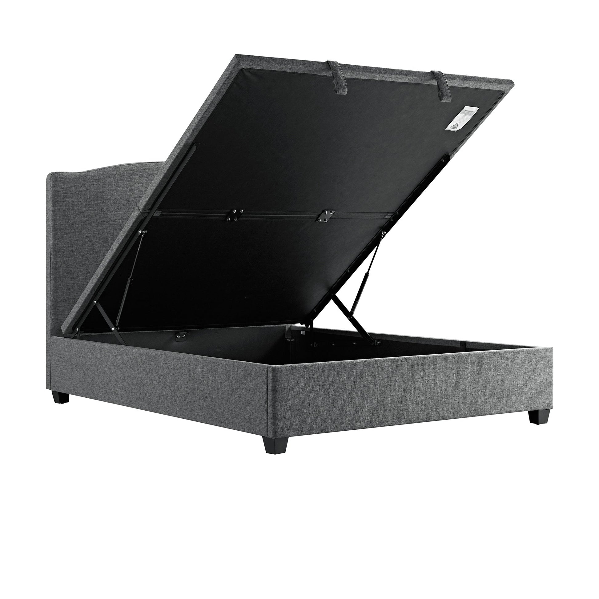 Lit ottoman rembourré Chilworth avec rangement, tissu tissé gris foncé