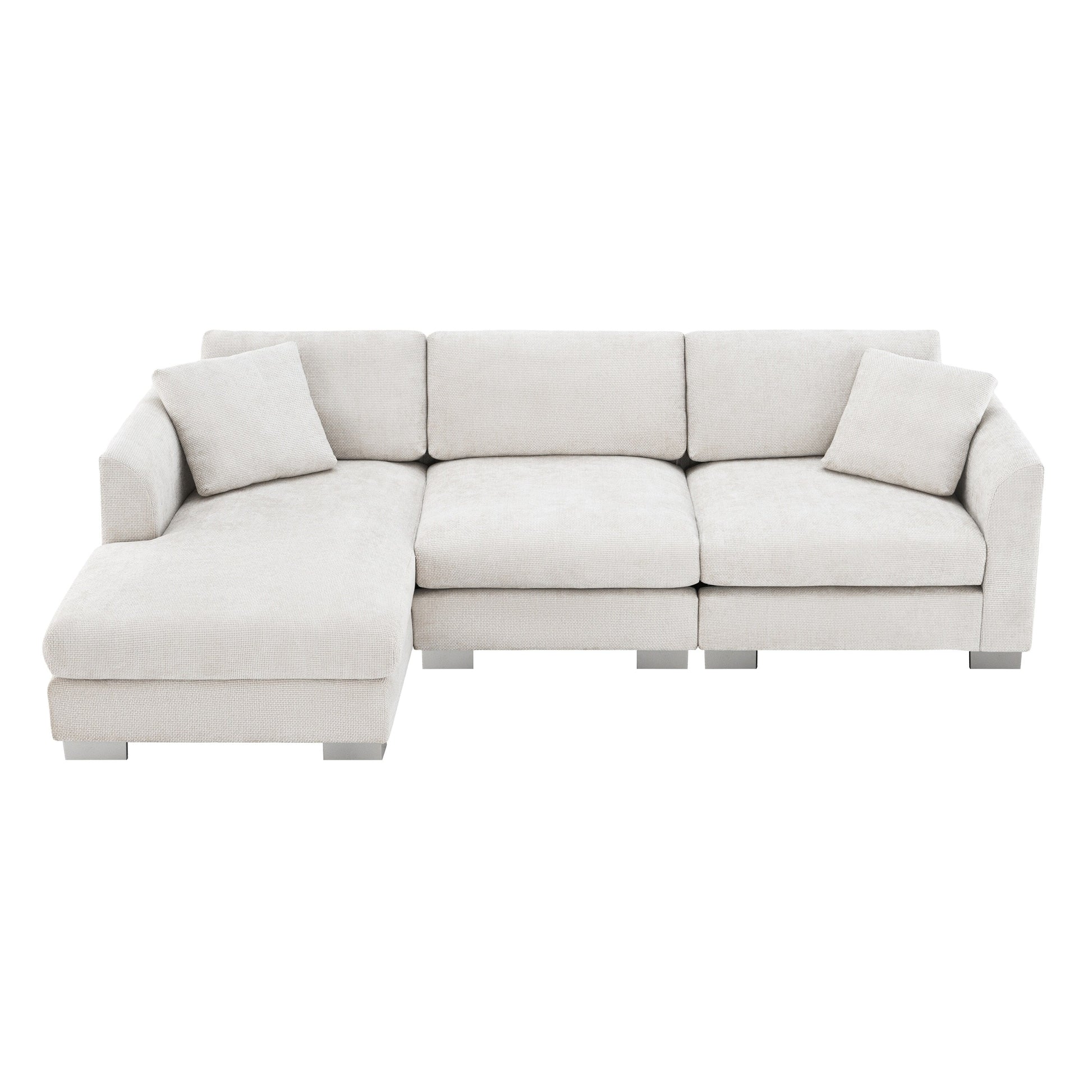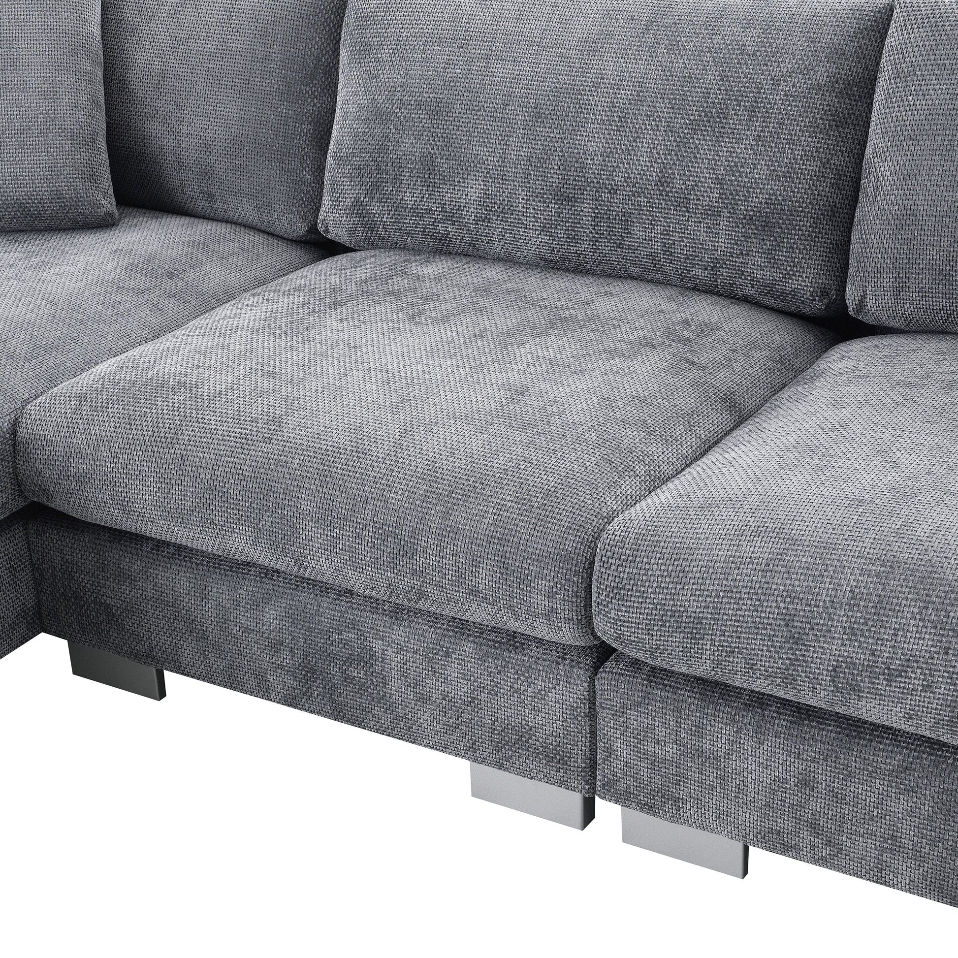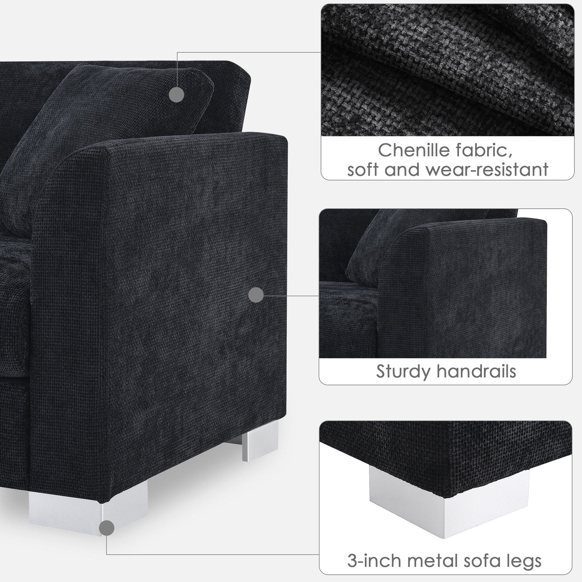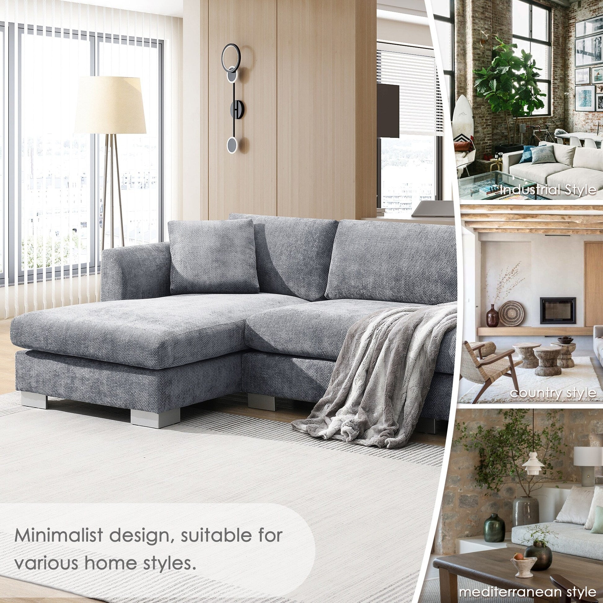 Canapé d'angle Cloud, ensemble de canapé de luxe en forme de L avec 2 coussins offerts, mobilier d'intérieur 4 places en chenille avec méridienne surdimensionnée