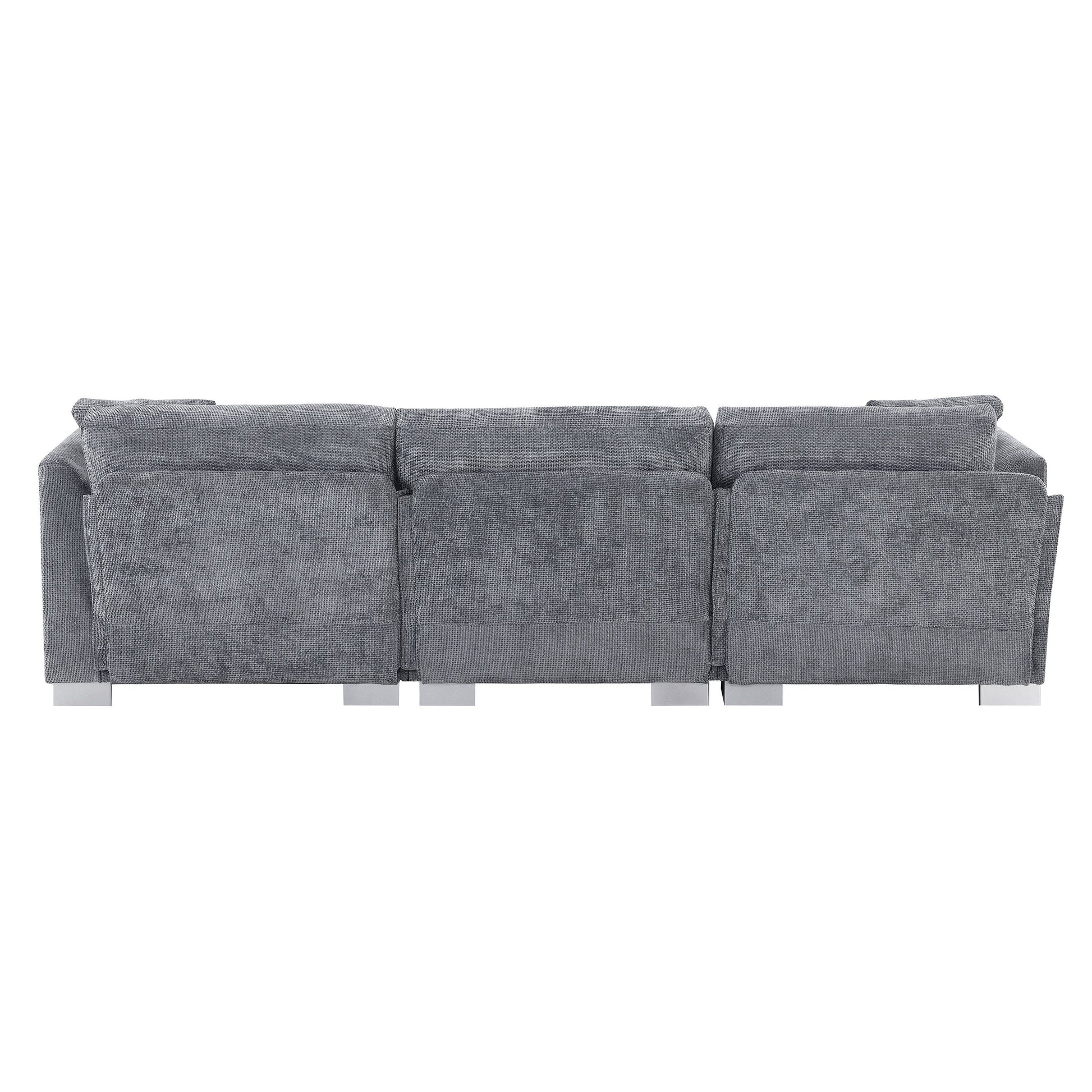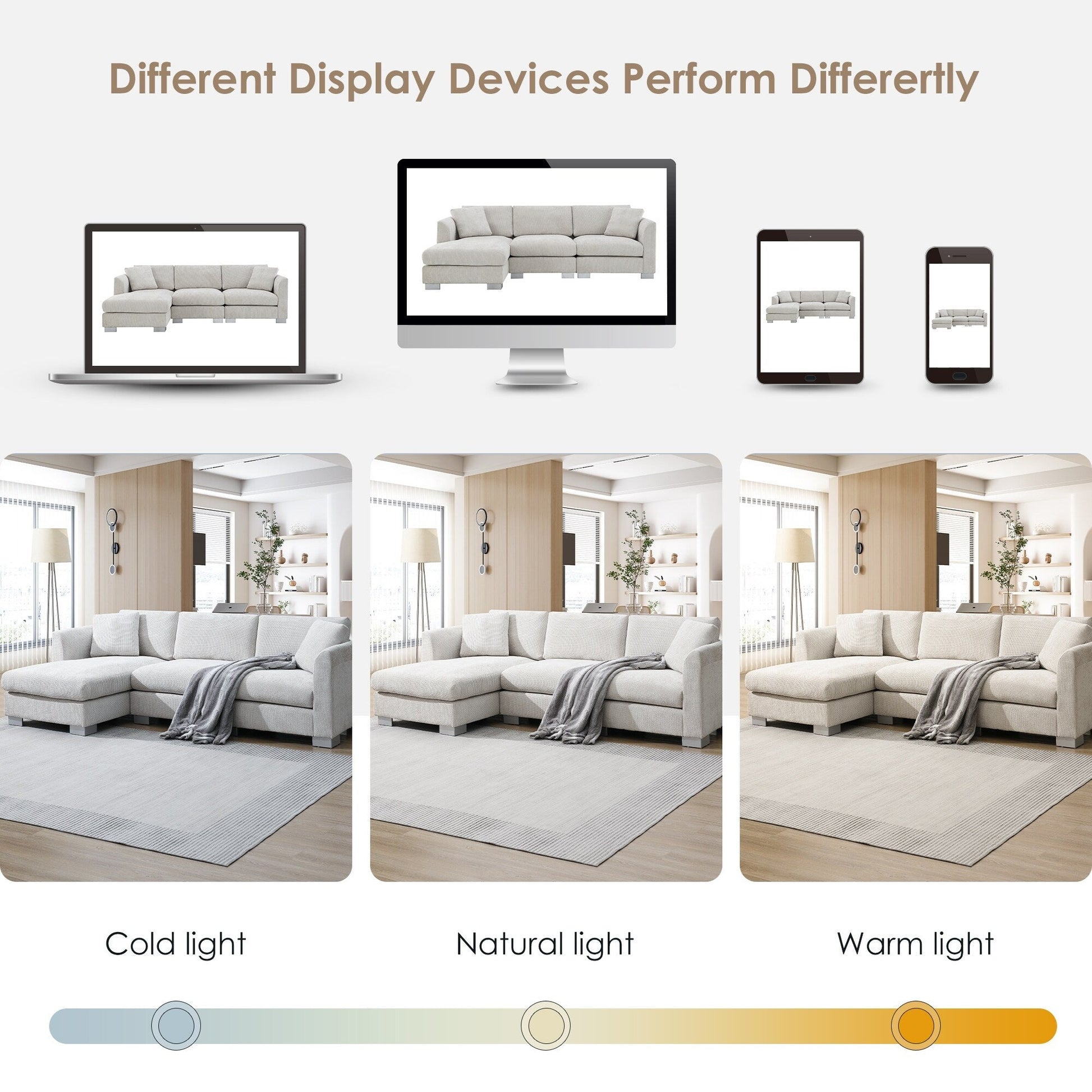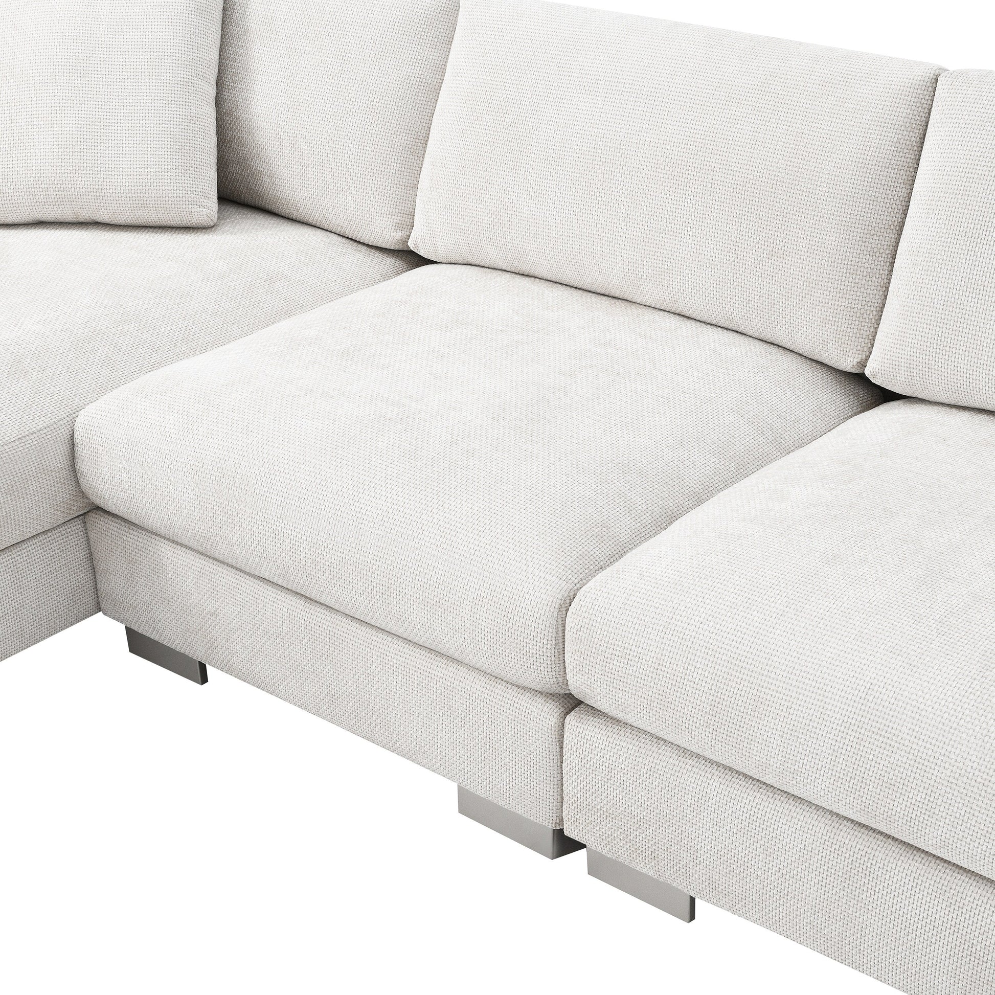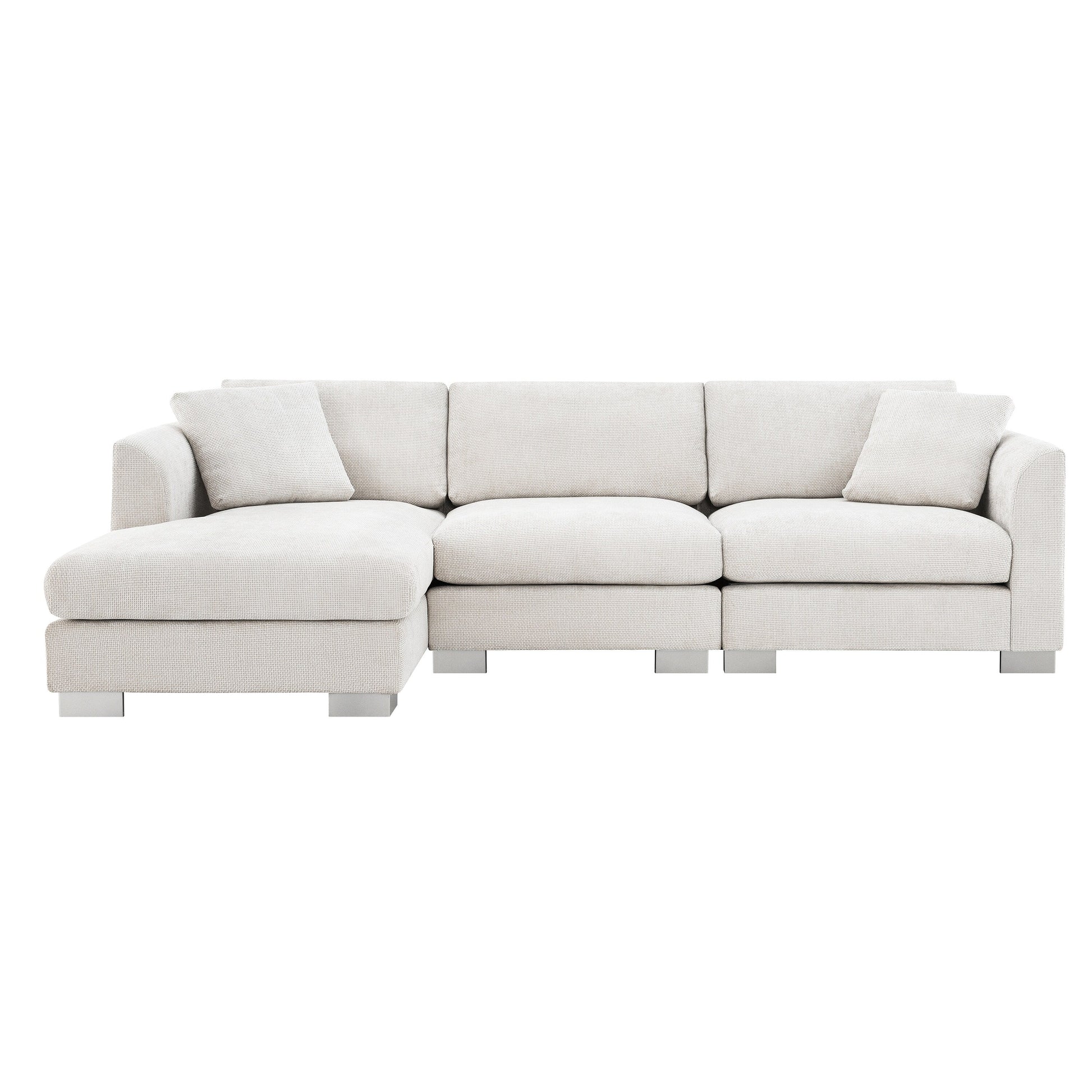 Canapé d'angle Cloud, ensemble de canapé de luxe en forme de L avec 2 coussins offerts, mobilier d'intérieur 4 places en chenille avec méridienne surdimensionnée