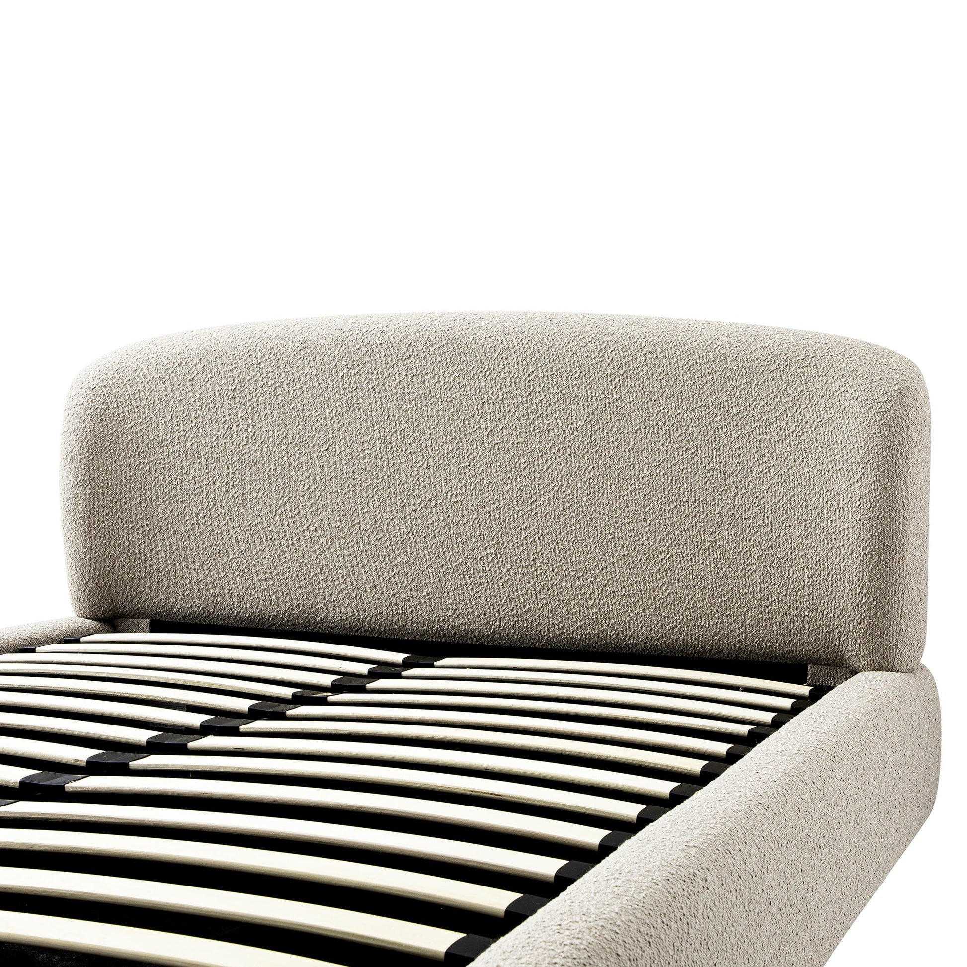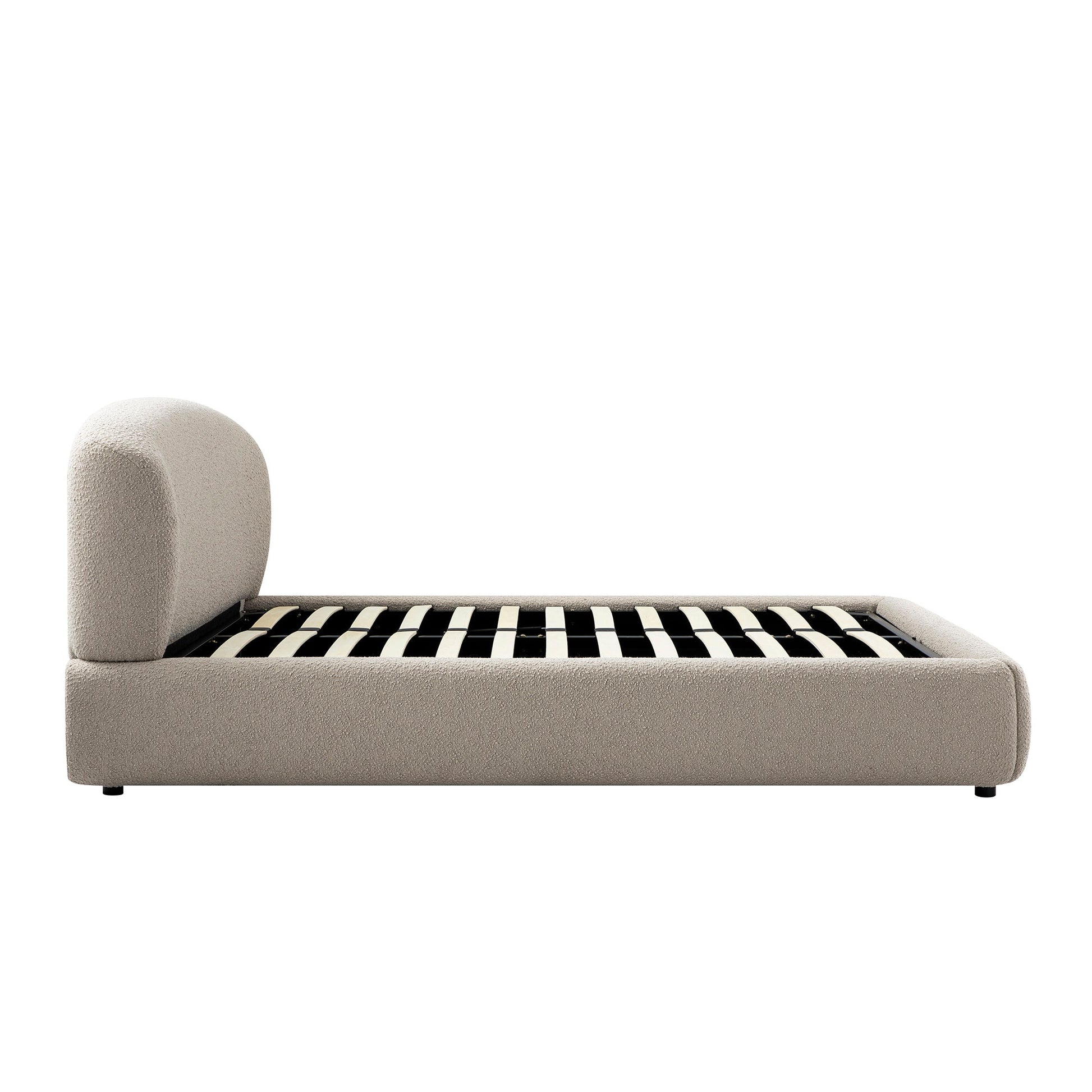 - Rembourré de manière moelleuse de la tête aux pieds, le lit est recouvert d' un magnifique tissu bouclé texturé de couleur taupe clair, y compris le dos de l'appui-tête.