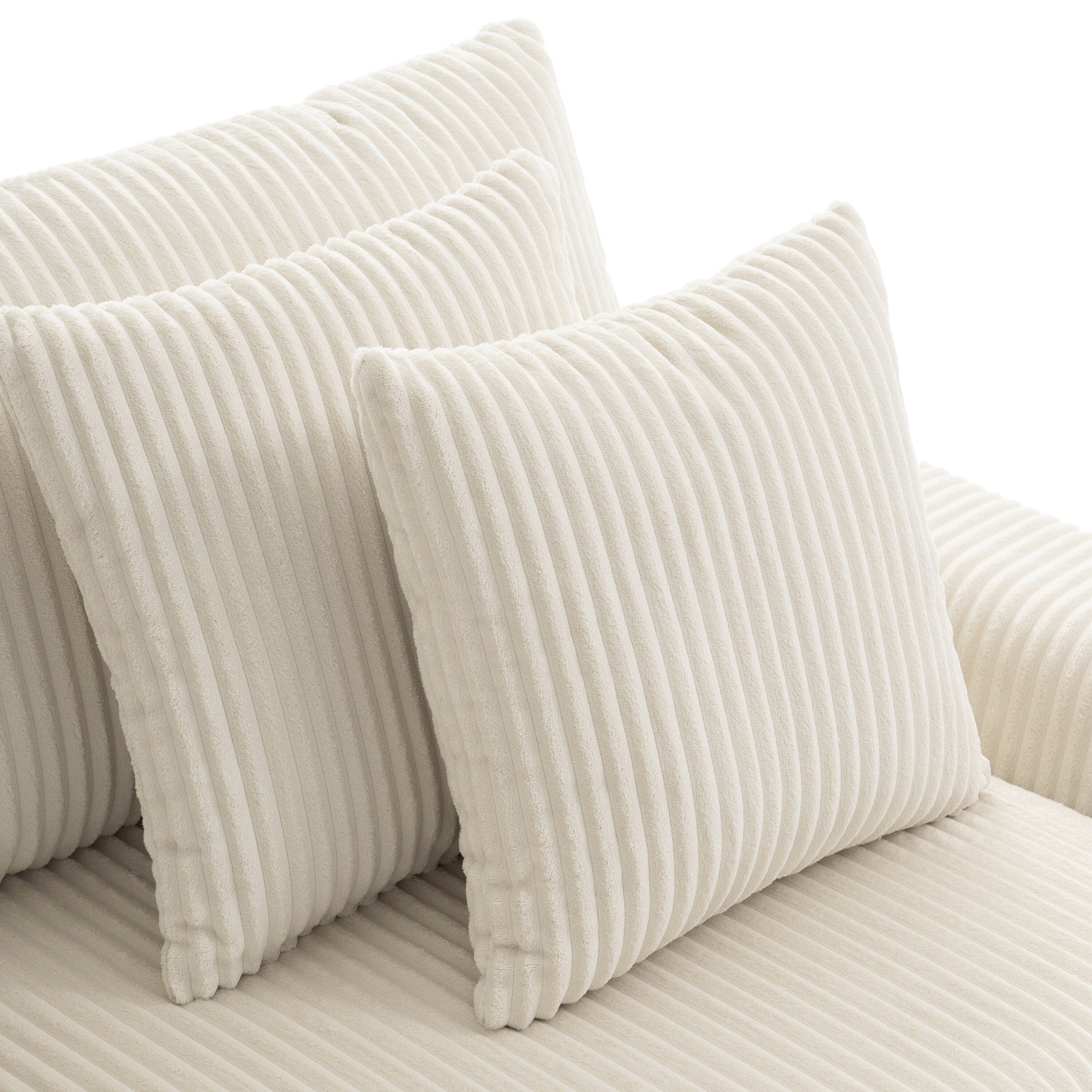 Canapé d'angle en velours côtelé avec haut-parleurs Bluetooth, chargeur USB, porte-gobelets, rangement, pouf et assise profonde et large.
