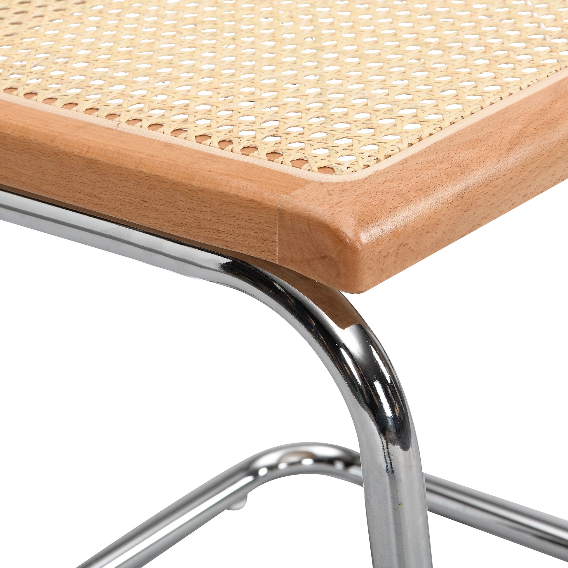 - Avec une structure en bois de hêtre massif, nos chaises Cosenza au design minimaliste présentent un siège et un dossier en rotin tressé à la main naturel avec des pieds chromés.