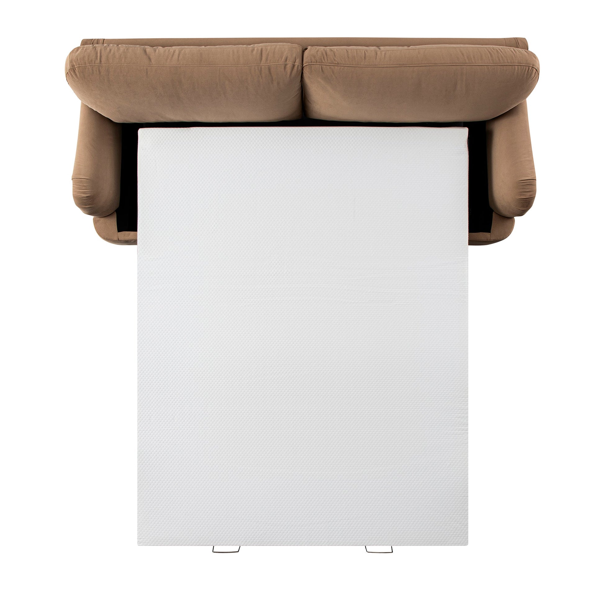 - Le mécanisme de canapé-lit rabattable à trois volets transforme le canapé en un lit avec ressorts ensachés et matelas rempli de mousse aussi large qu'un lit king-size.