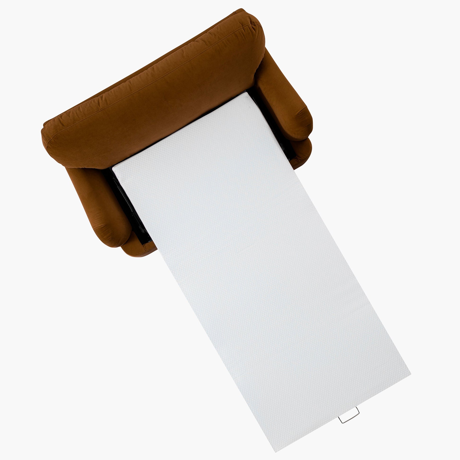 - Le mécanisme de canapé-lit rabattable à trois volets transforme la causeuse en un lit avec ressorts ensachés et matelas rempli de mousse.