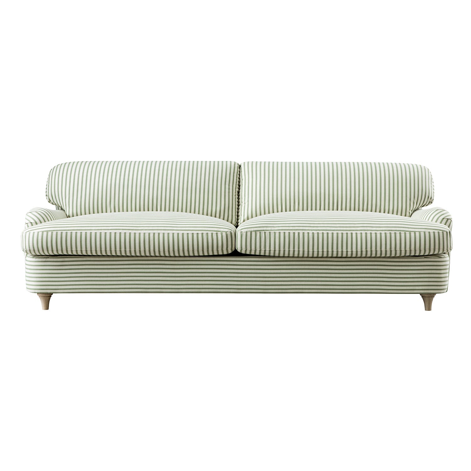 Canapé-lit 3 places en lin mélangé à rayures vertes Daphnis