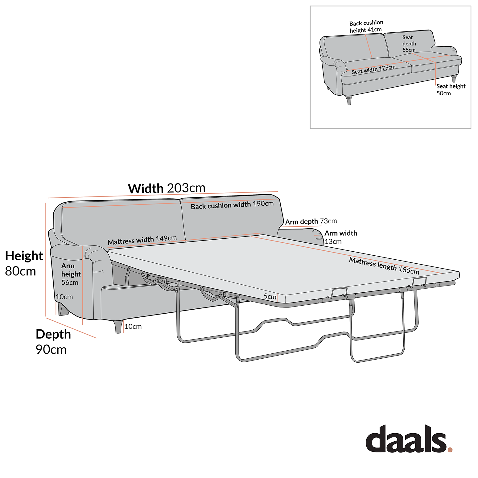- Canapé-lit trois places dimensions : L 203 x P 90 x H 80 cm.