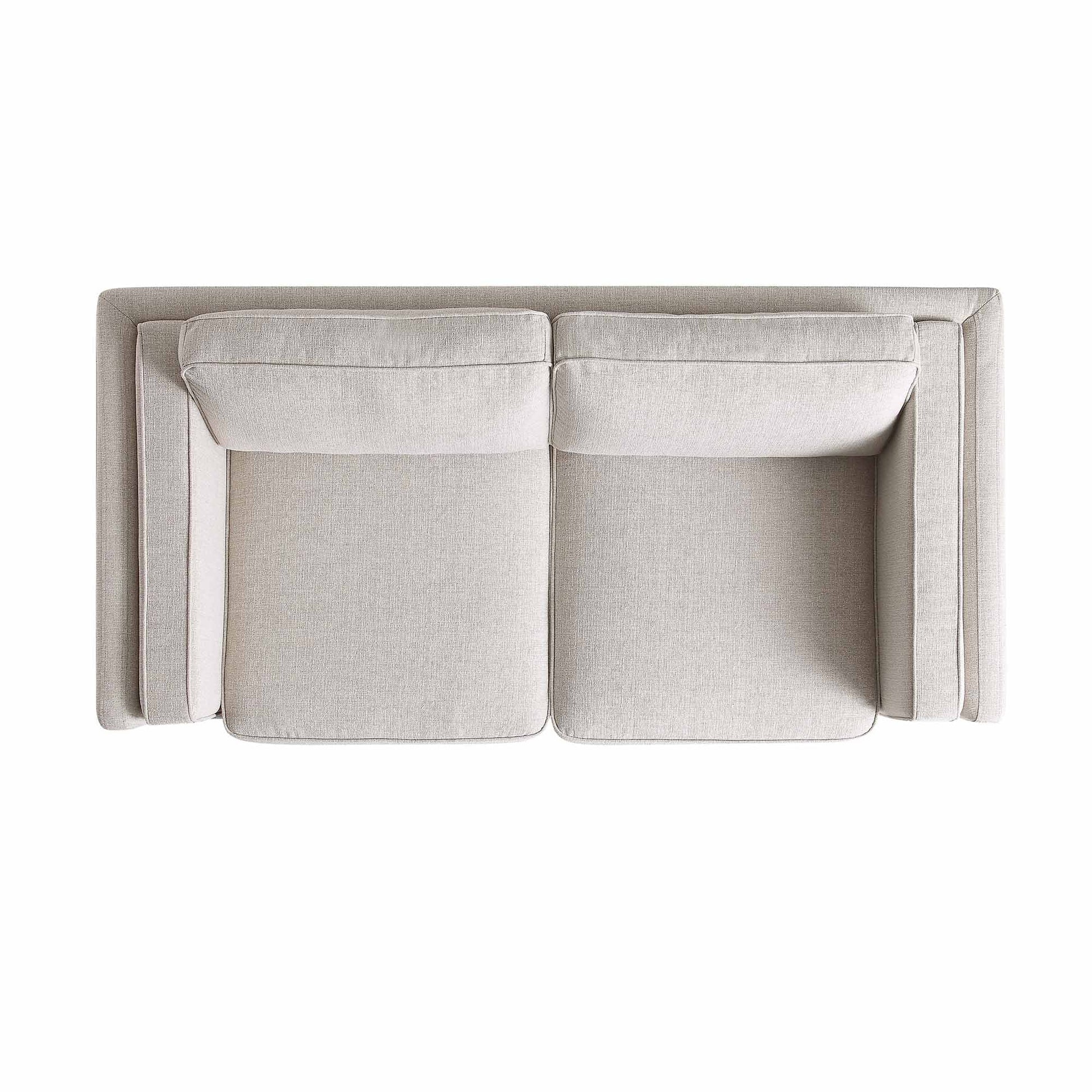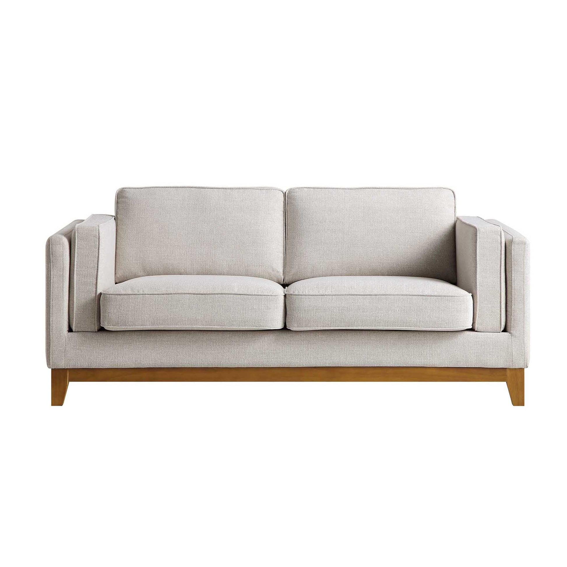- Conçu avec des accoudoirs droits et une base en bois massif, le canapé est doté de coussins d'assise composés de ressorts et de mousse pour un espace de détente confortable.