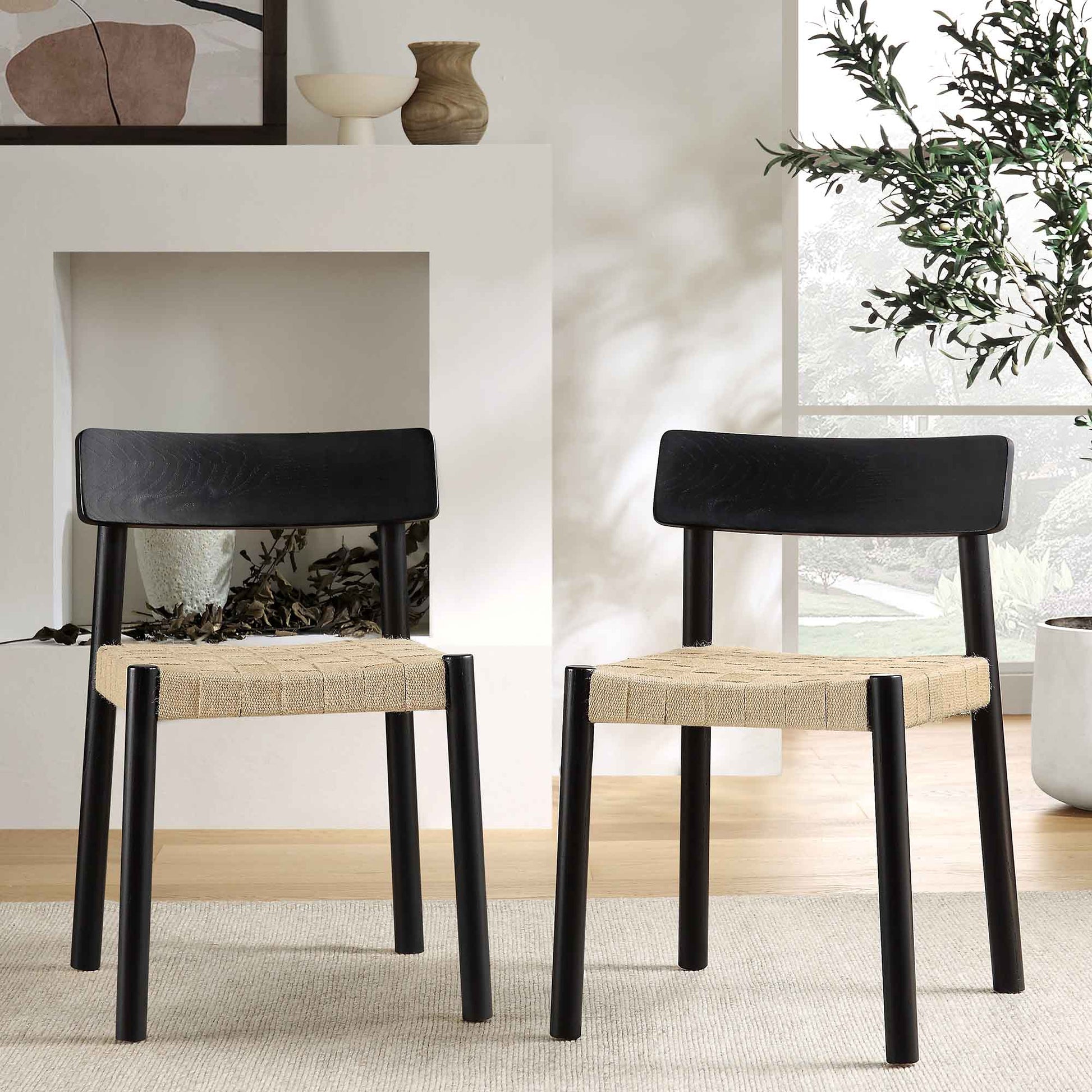 Ensemble de 2 chaises de salle à manger Ditton en bois d'orme et jute, noir