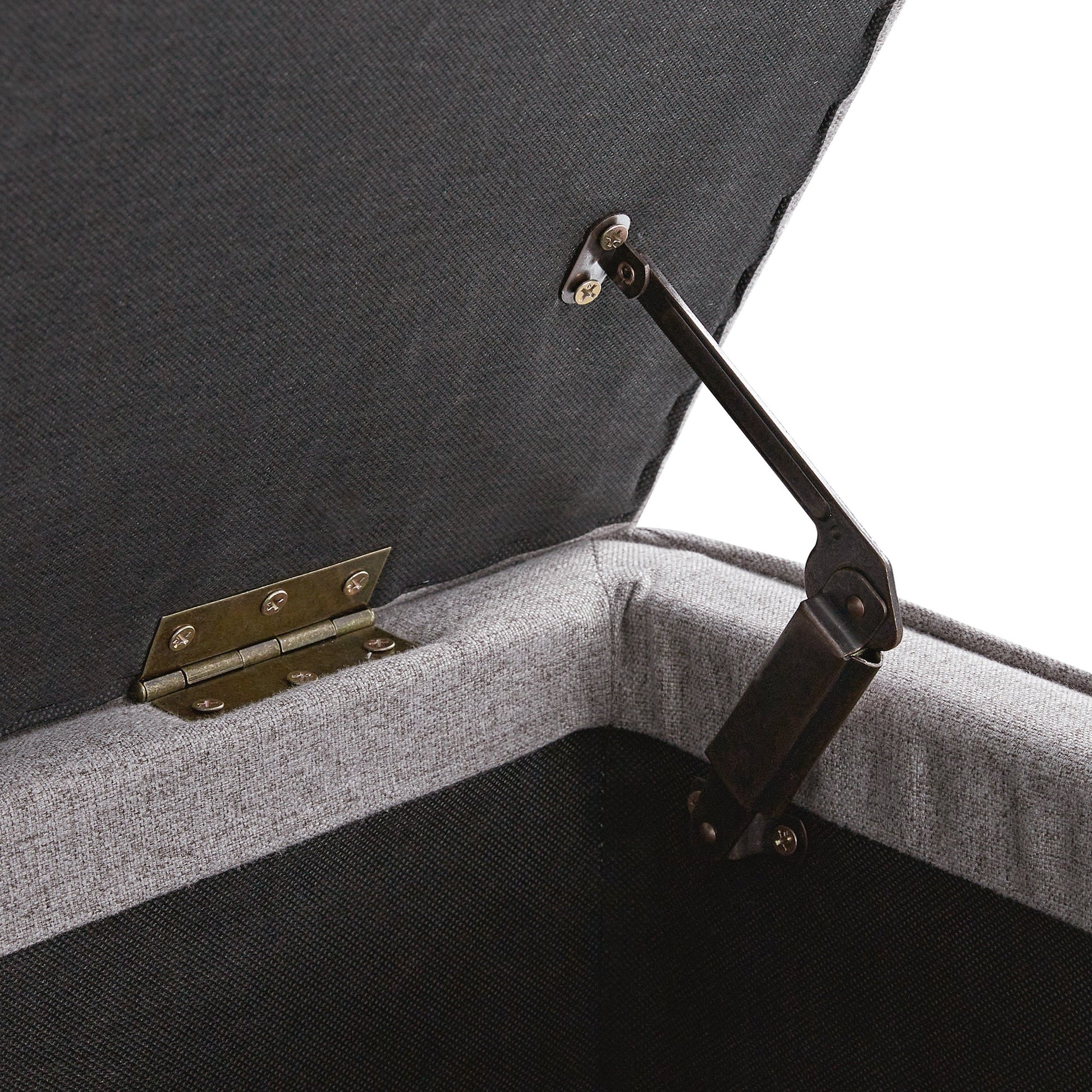 - Le dessus rembourré se soulève pour révéler un espace de rangement dissimulé, idéal pour ranger des jetés, des coussins et du linge de maison.