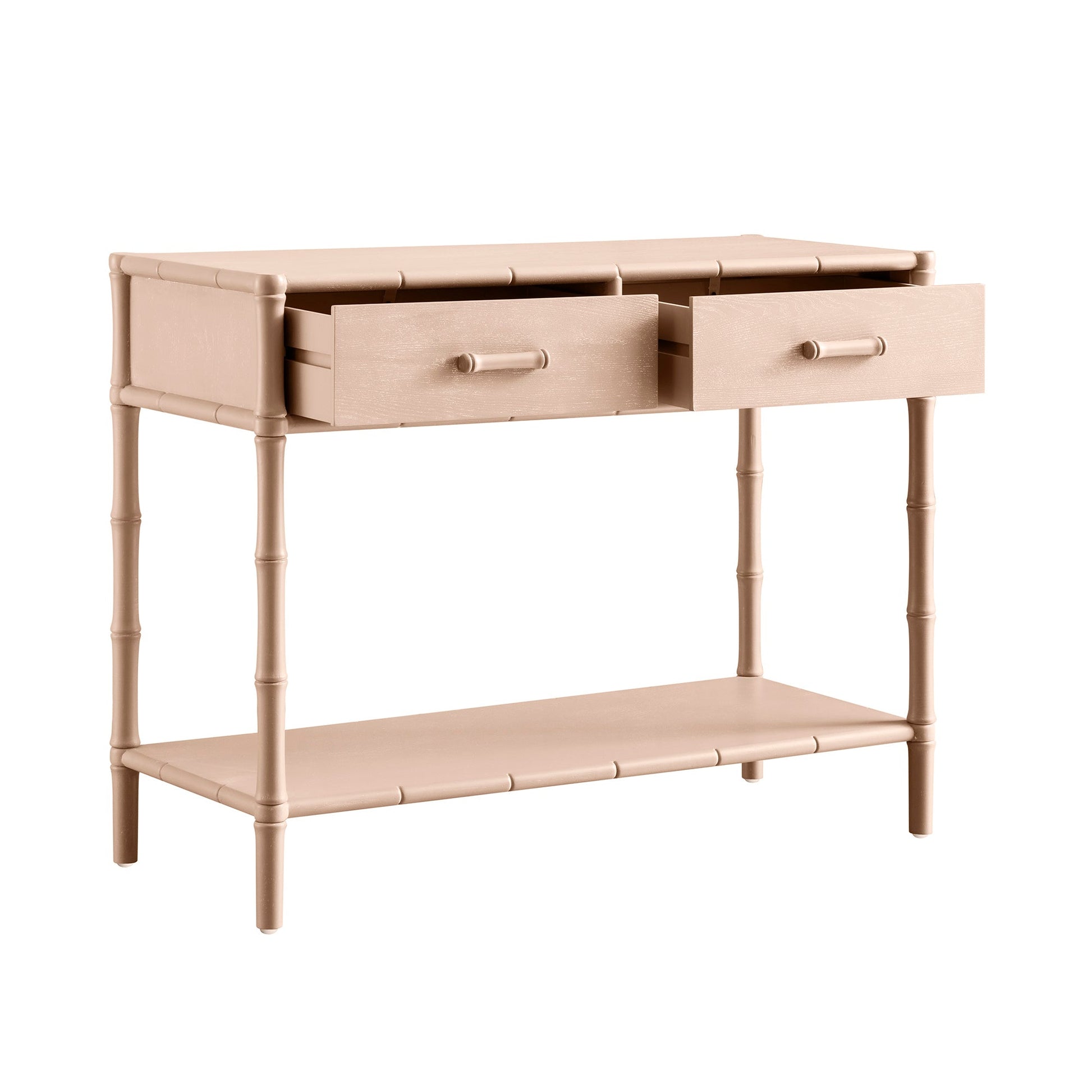 Console 2 tiroirs Elstowe en imitation bambou, rose nude