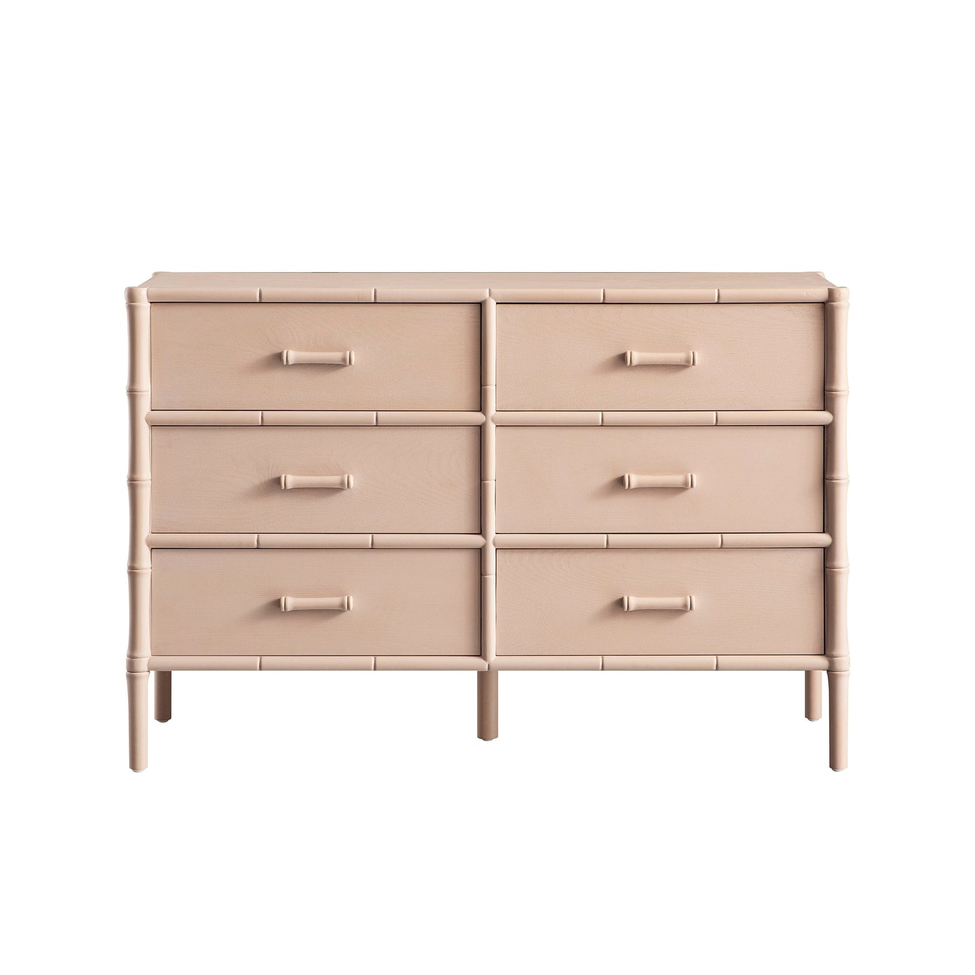 Commode 6 tiroirs Elstowe en imitation bambou, rose nude