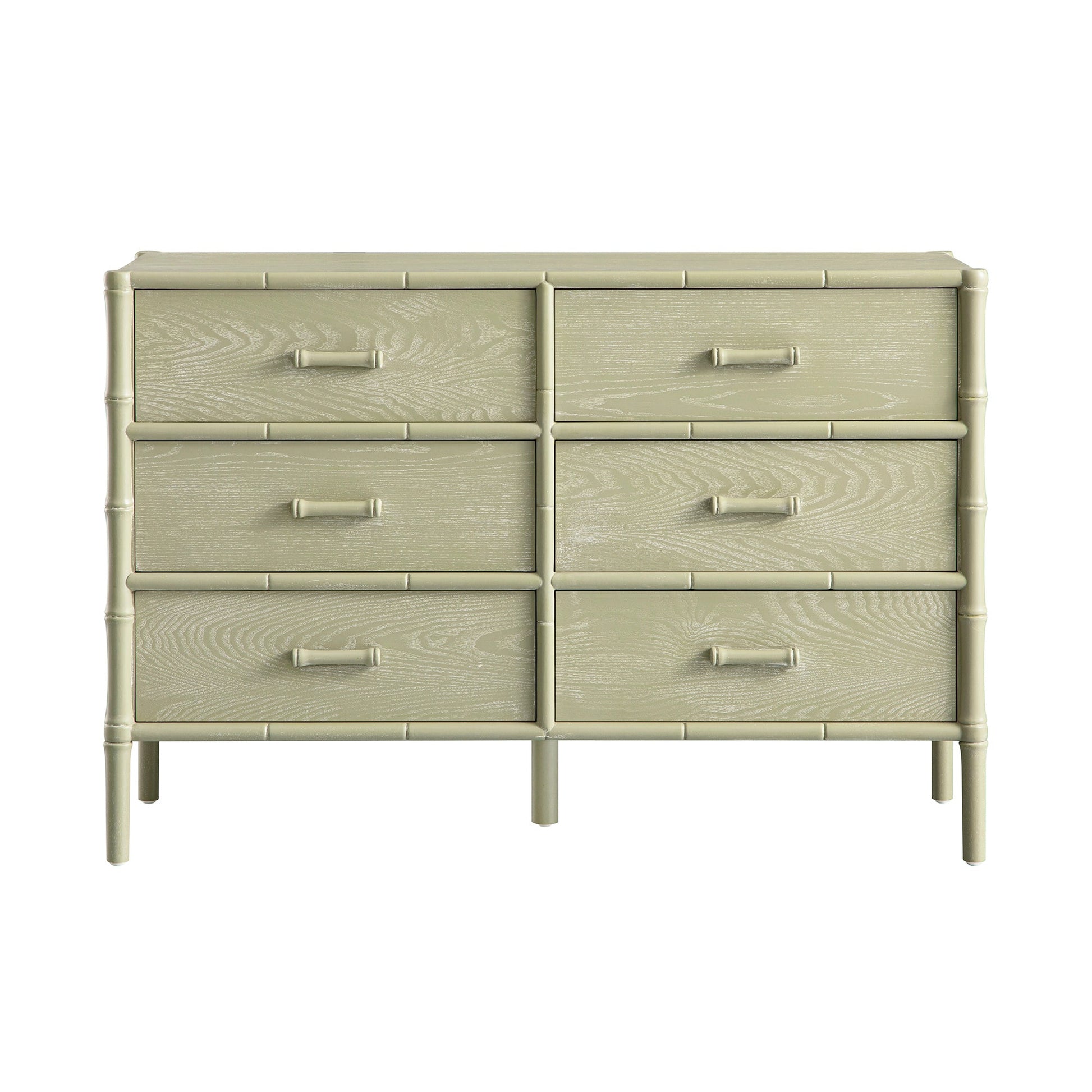 Commode 6 tiroirs Elstowe en imitation bambou, vert sauge
