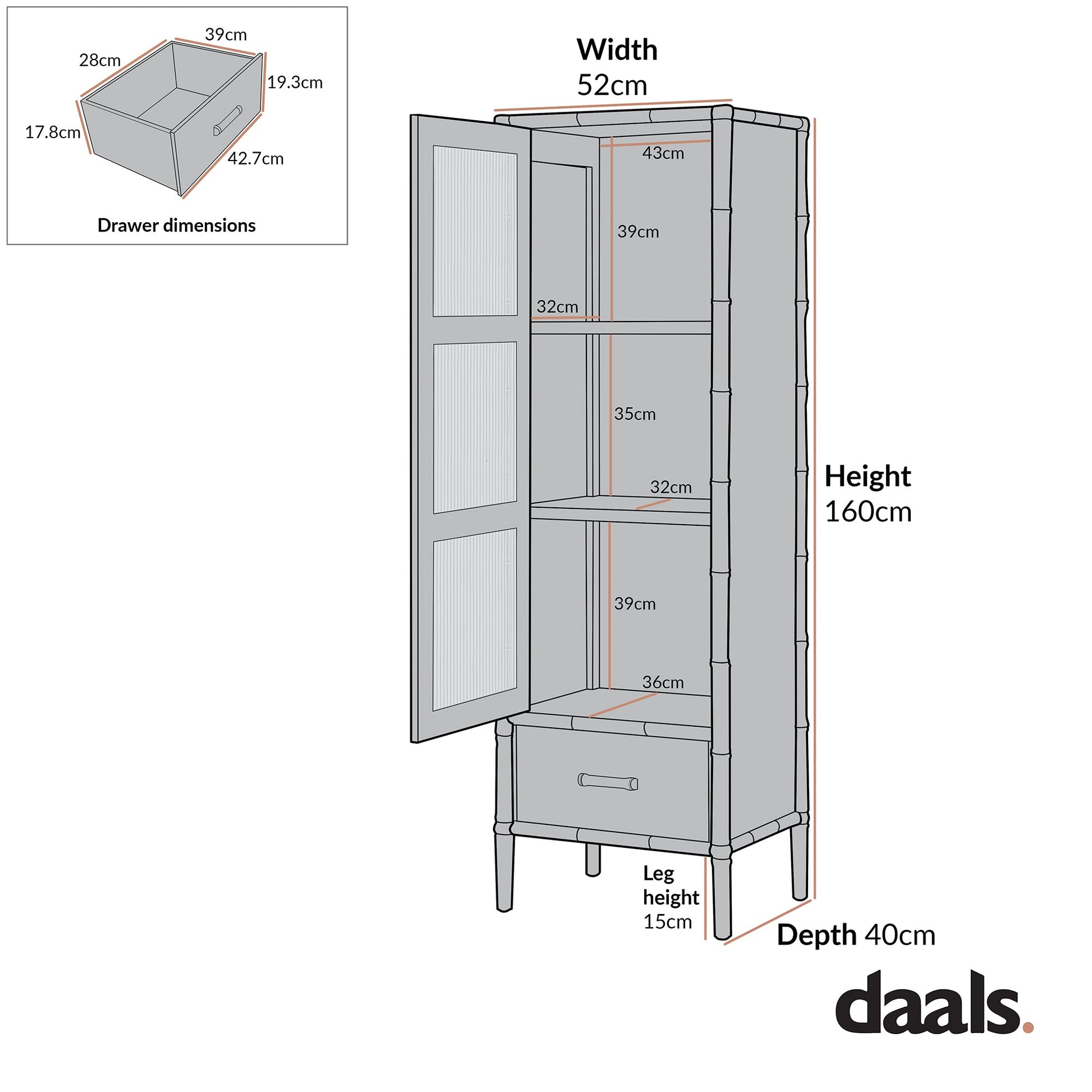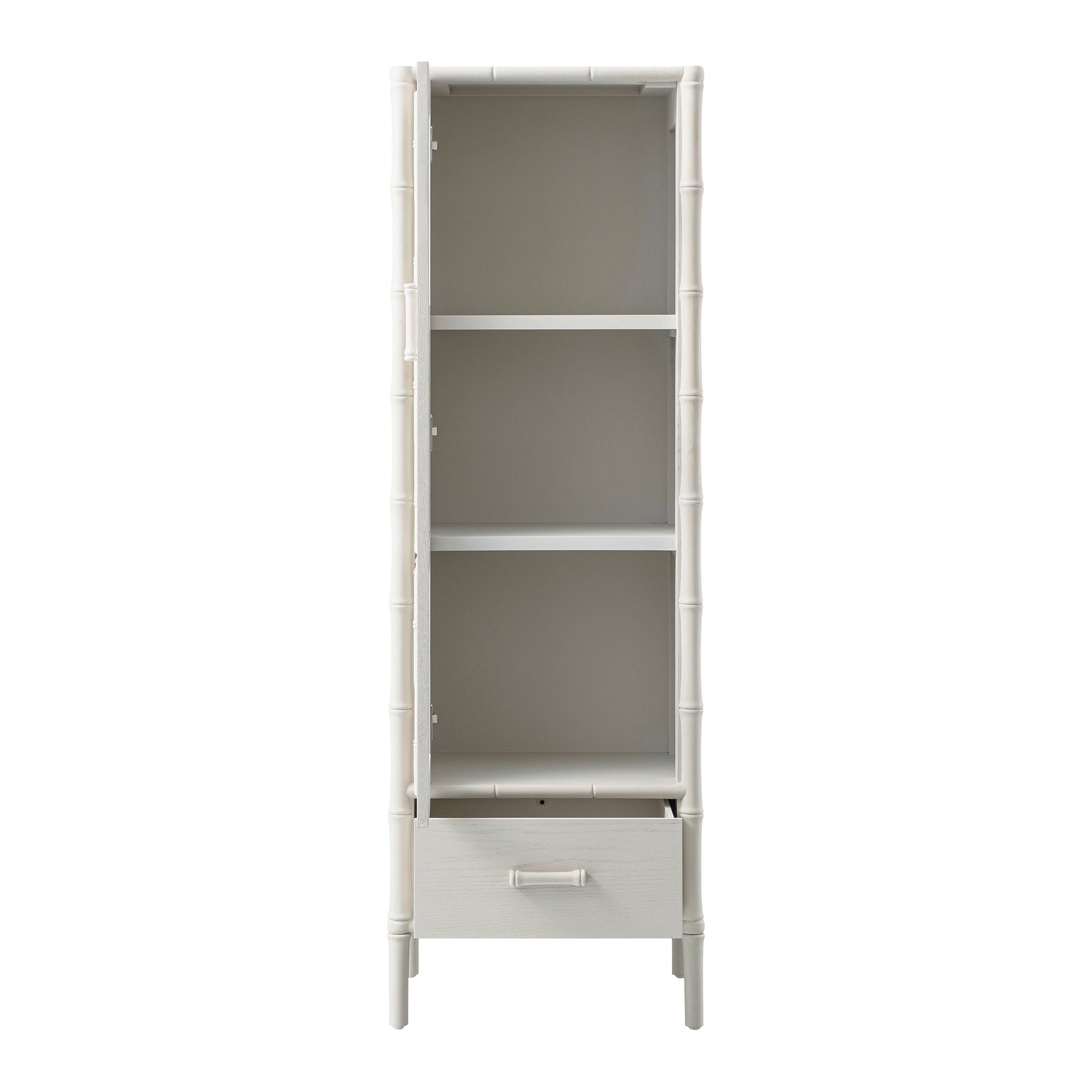 Armoire 1 porte Elstowe en imitation bambou et verre cannelé, blanc ombré